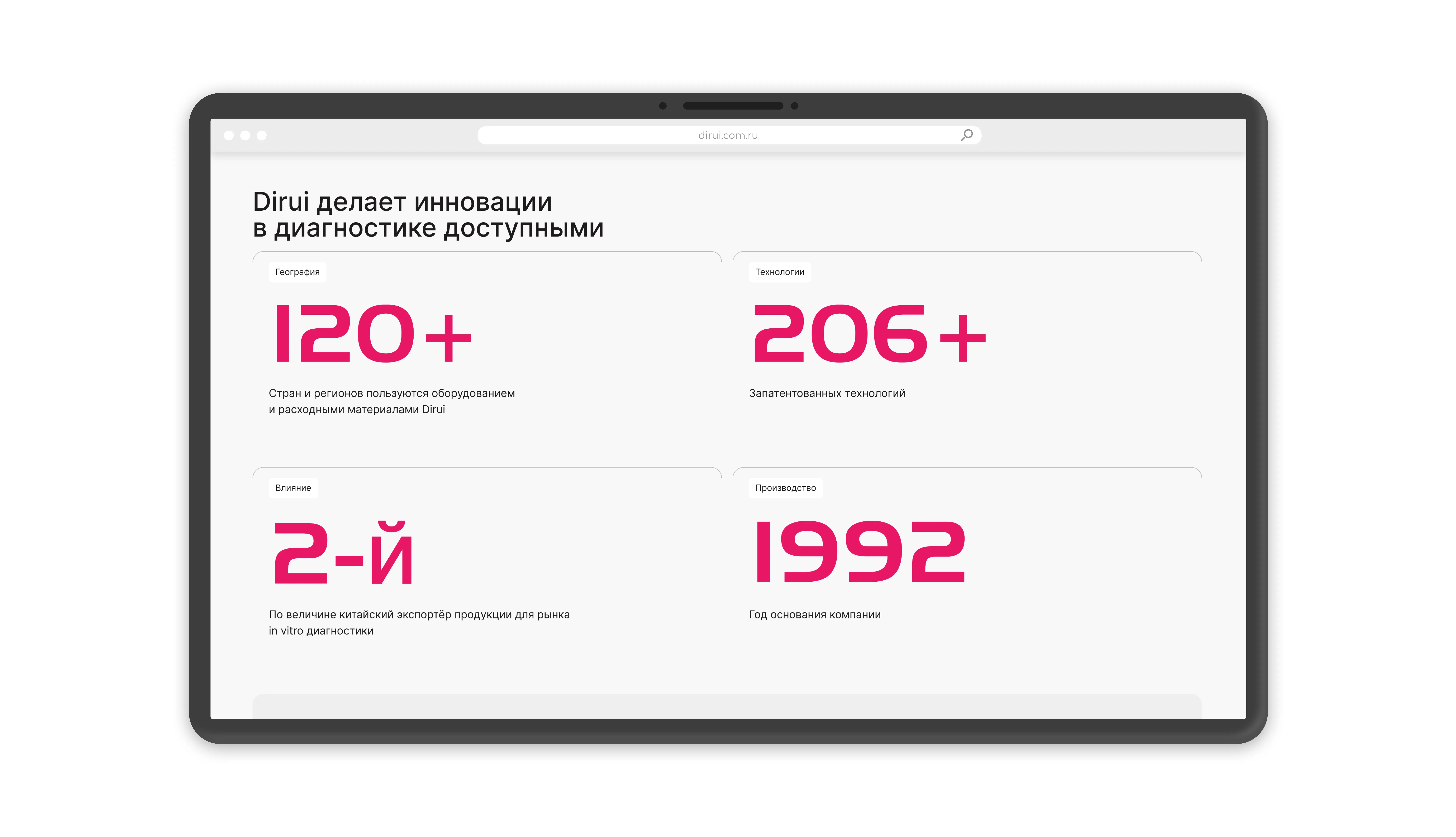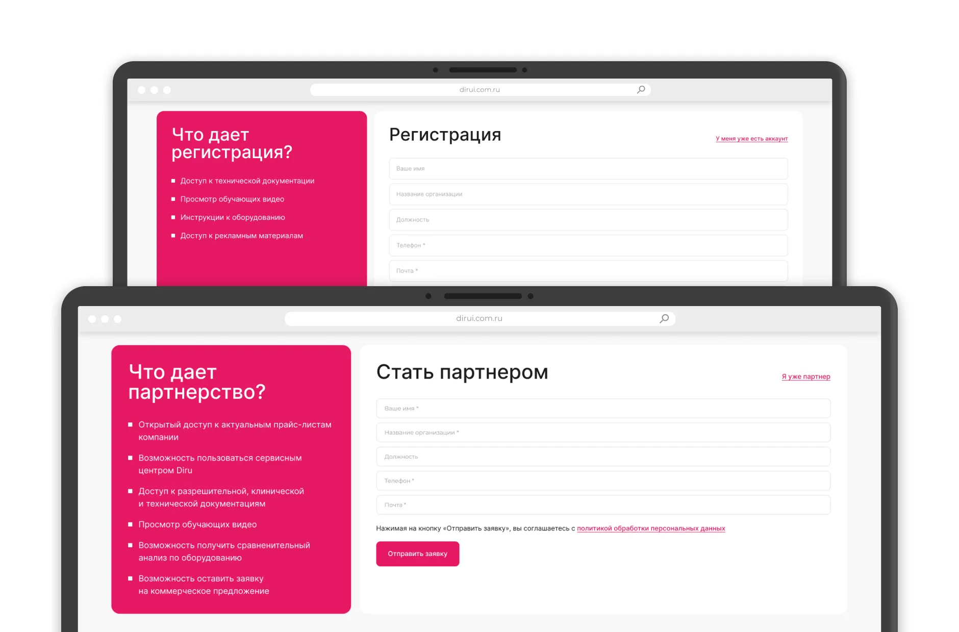 Российскому представительству компании DIRUI, занимающейся поставками медицинских анализаторов для лабораторий, необходим эффективный интернет-ресурс, способствующий информированию партнеров и потенциальных покупателей о продукции и услугах компании. Необходимо обеспечить возможность оформления заказов, подбора оборудования, загрузки документов и взаимодействия с представителями компании. Дополнительно требуется реализовать механизмы авторизации и персонализации доступа, а также систему периодической проверки статуса дилеров.