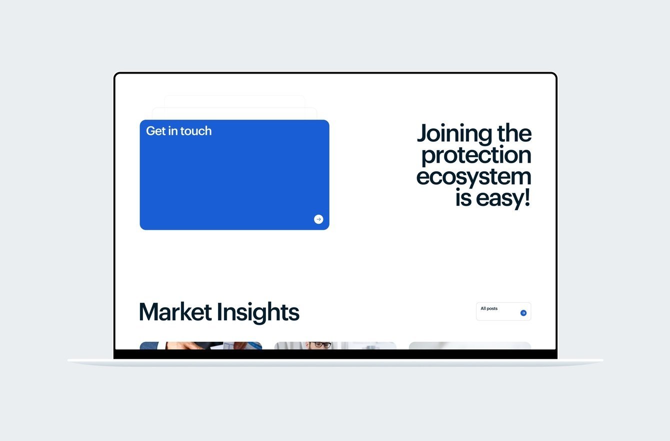 Дополнили бренд. Разработали слоган Discover the Evolution of Insurance Ecosystems. Создали прозрачную 3D-версию логотипа, детали которой стали основой паттернов дизайна.