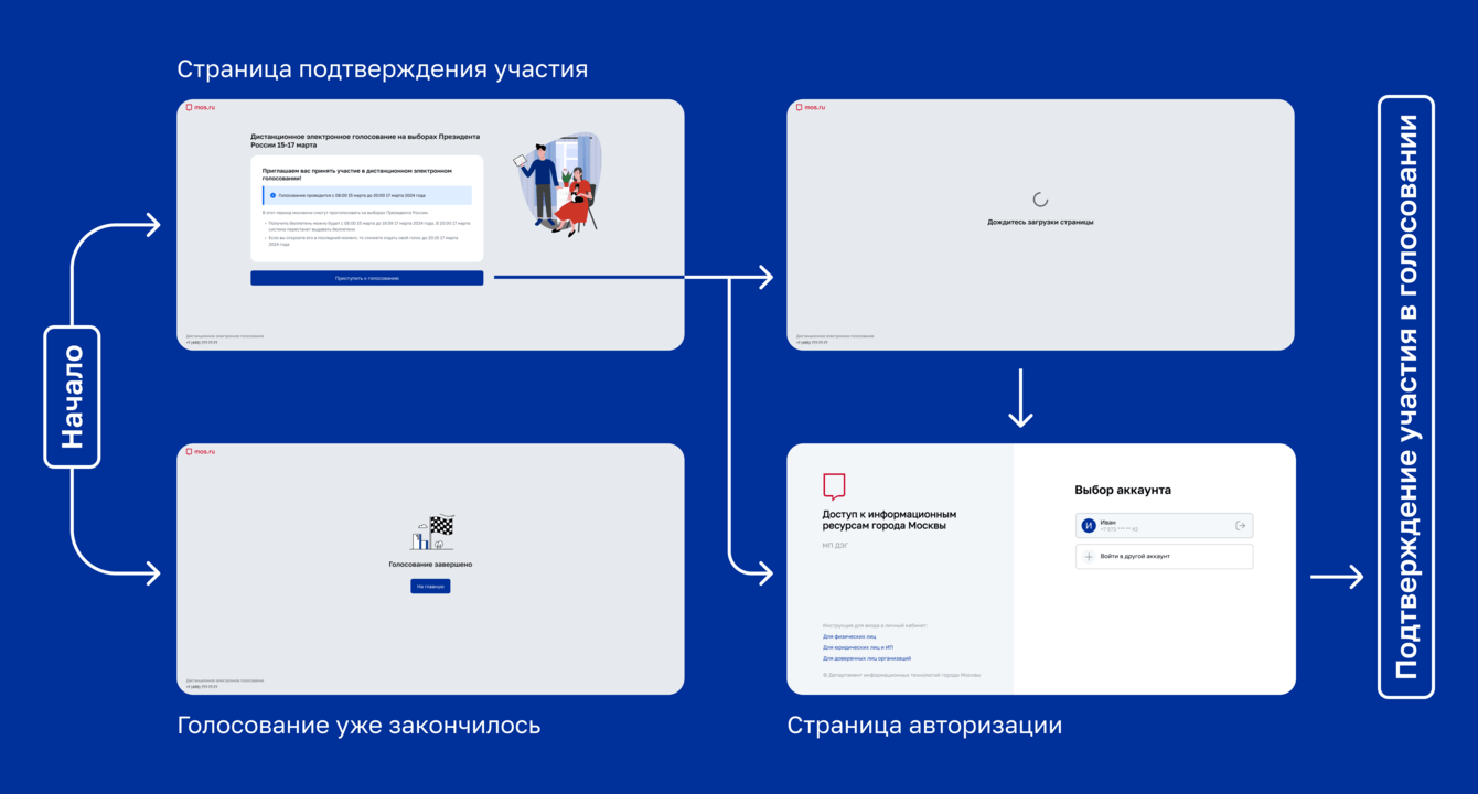 Решение: мы тщательно продумали пользовательский путь с учетом всех возможных разветвлений и разработали понятный интерфейс. Заказчик дал нам подробное ТЗ с прописанными сценариями и доступ к дизайн-системе портала mos.ru.