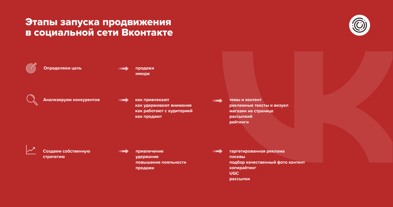• привлечение аудитории осуществляем в основном через таргетированную рекламу. В «ВК» не развита культура блогеров и инфлюенсеров, но есть возможность делать рекламные посты в тематических сообществах. Однако такие посевы, как показала практика, не очень эффективны для нашей ниши;