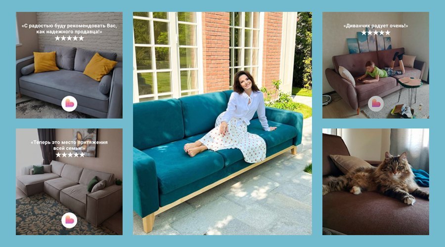 • промо контент (это максимально подробное описание товаров с качественными фото диванов в деталях и со всех возможных ракурсов)