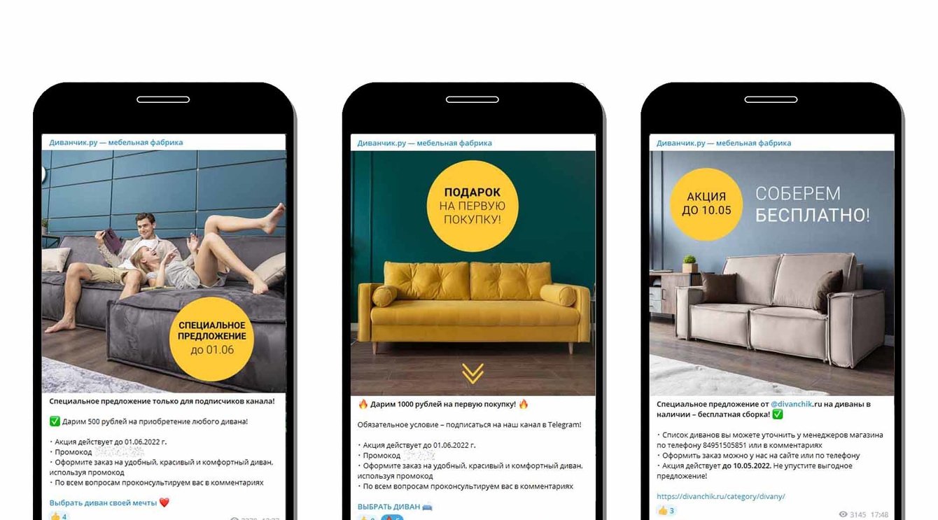 После блокировки среди социальных сетей все, кто делал ставку на омниканальность в продвижении, были вынуждены искать альтернативные способы продвижения услуг и товаров в сети. В рекламных кампаниях мебельной фабрики «Диванчик.ру» мы тестировали все возможные каналы для продвижения, которые остались доступны: TikTok, социальные сети «Одноклассники» и «ВКонтакте», MyTarget, мессенджер Telegram и планомерно проверяли их эффективность. В этом кейсе рассказываем о том, как мы настроили работу в «ВКонтакте» и Telegram и каких результатов нам удалось добиться за полгода активной работы.
