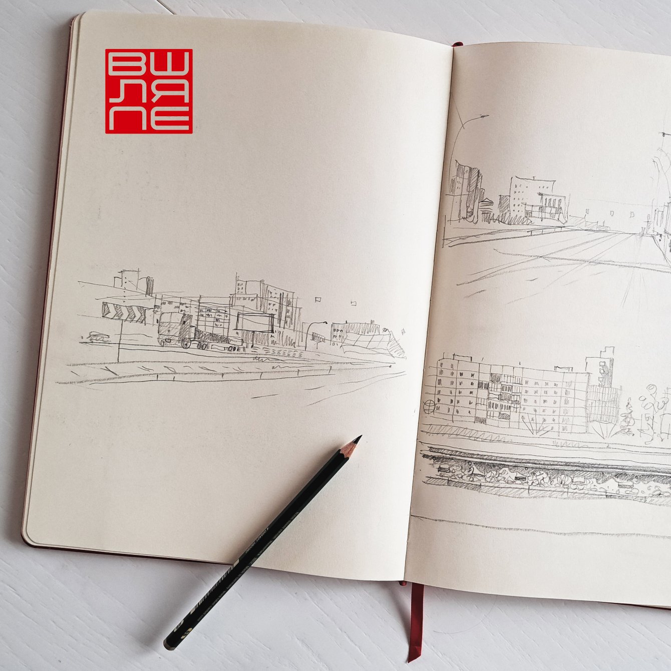 Решено было сделать несколько рисунков различных видов Купчино, чтобы придать дизайну узнаваемость места, в котором вырос лидер группы Билли Новик.