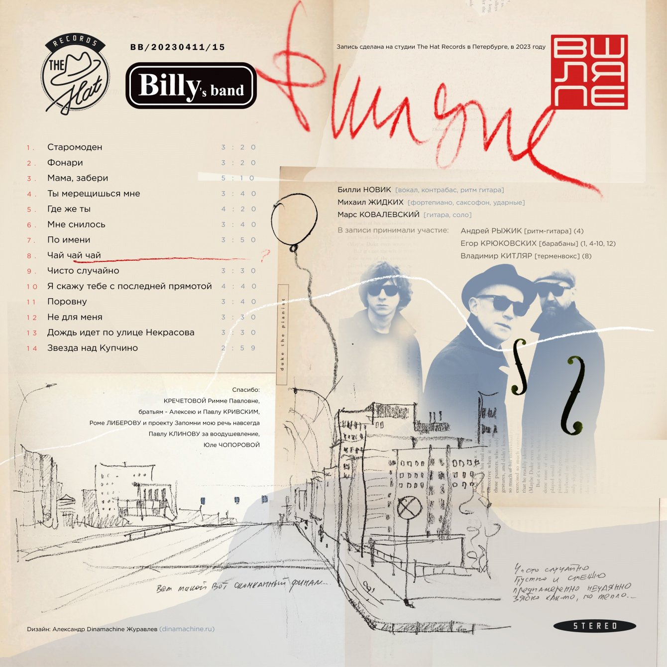 Заказчик (группа Billy's Band) попросил разработать обложку, задник, яблоко и конверт альбома "в Шляпе" (2023) в стилистике виниловых пластинок 50х годов.