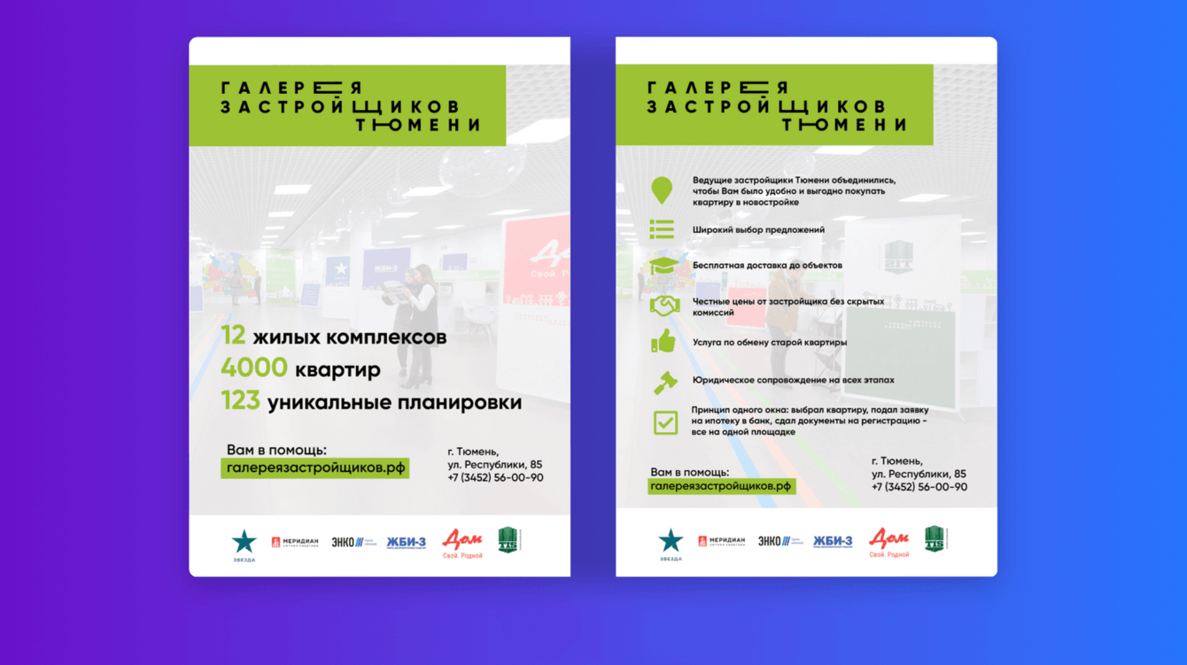 Главная цель проекта заключалась в разработке буклета, который бы не только информировал потенциальных клиентов о проектах и услугах "Галереи Застройщиков", но и создавал положительное впечатление о компании, её надежности и качестве работы.