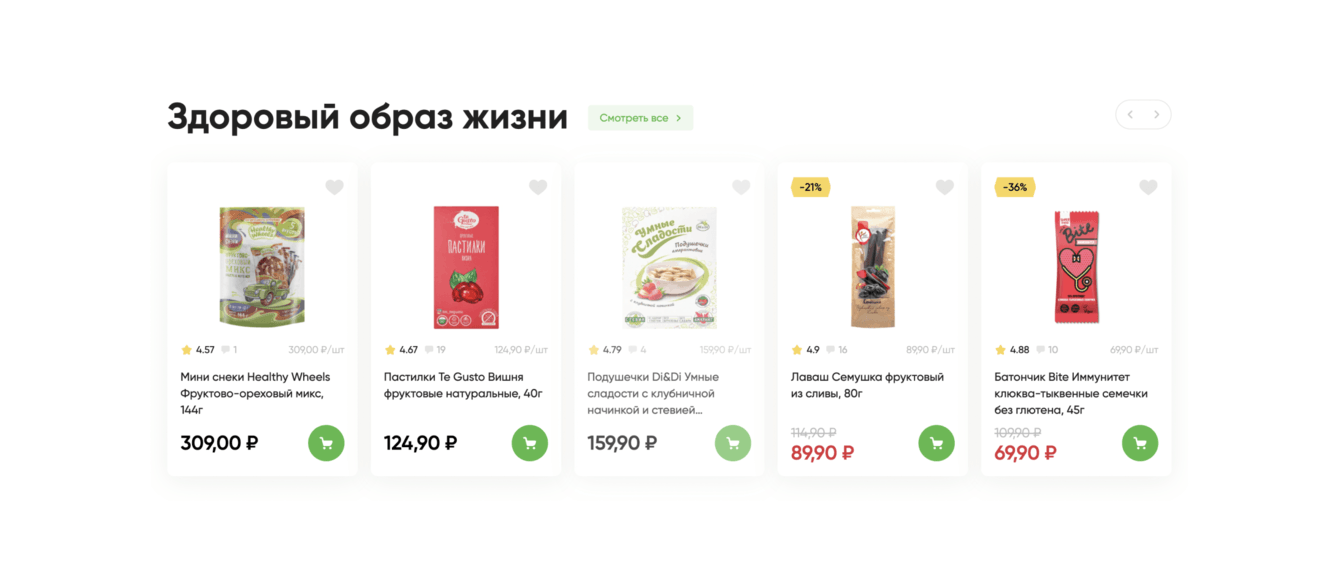 Особое внимание «Перекрёсток» уделяет заботе о здоровье, поэтому для клиентов сети сделали ЗОЖ-блок на главной странице.