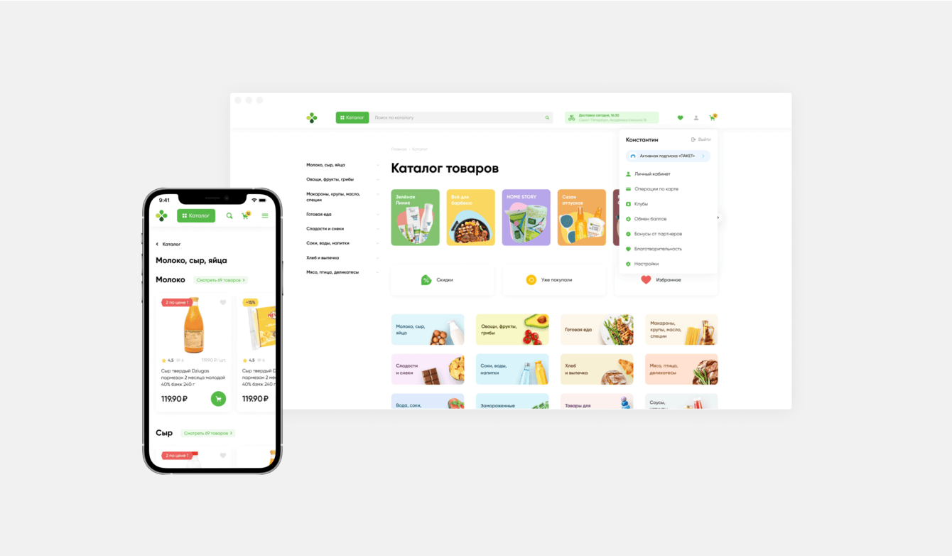 Мы разработали дизайн-концепты главной страницы, каталога, карточек товара, тематических клубов, личного кабинета, формы заказа, чата поддержки.