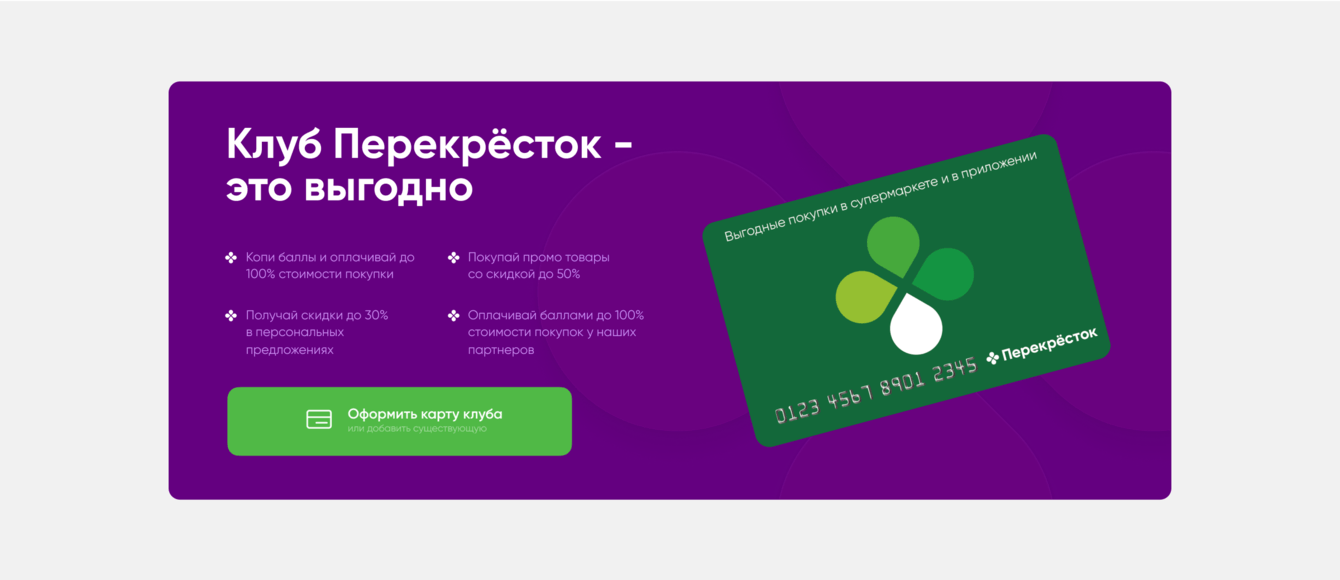 Привлекать аудиторию на сайт проще и дешевле, чем сразу в мобильное приложение. В специальном предлагаем клиенту скачать приложение, чтобы «Перекрёсток» всегда был под рукой в смартфоне.
