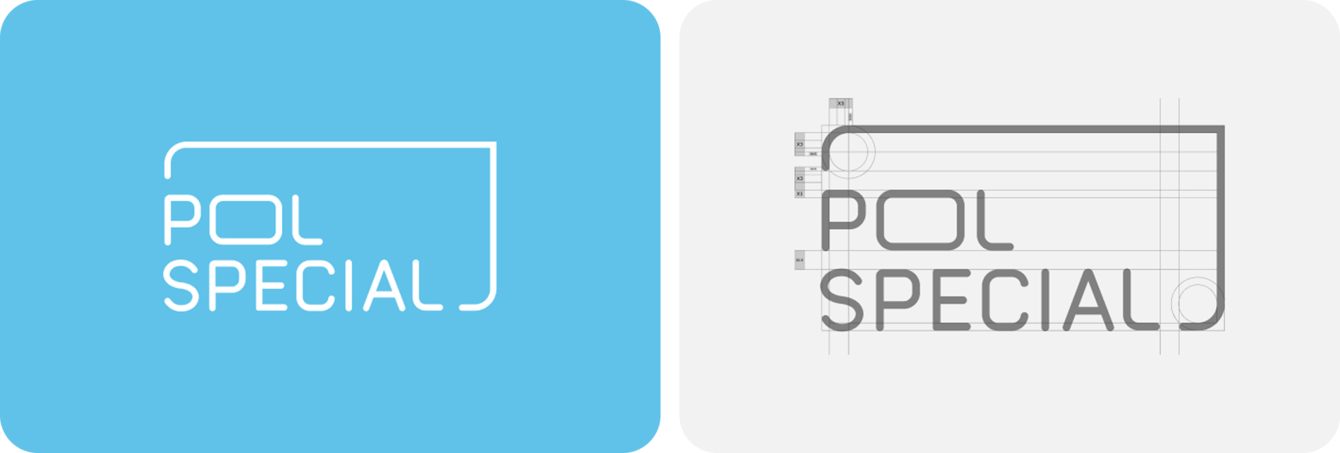 Логотип имеет форму бассейна, дополнительно сделано упрощенное начертание логотипа.