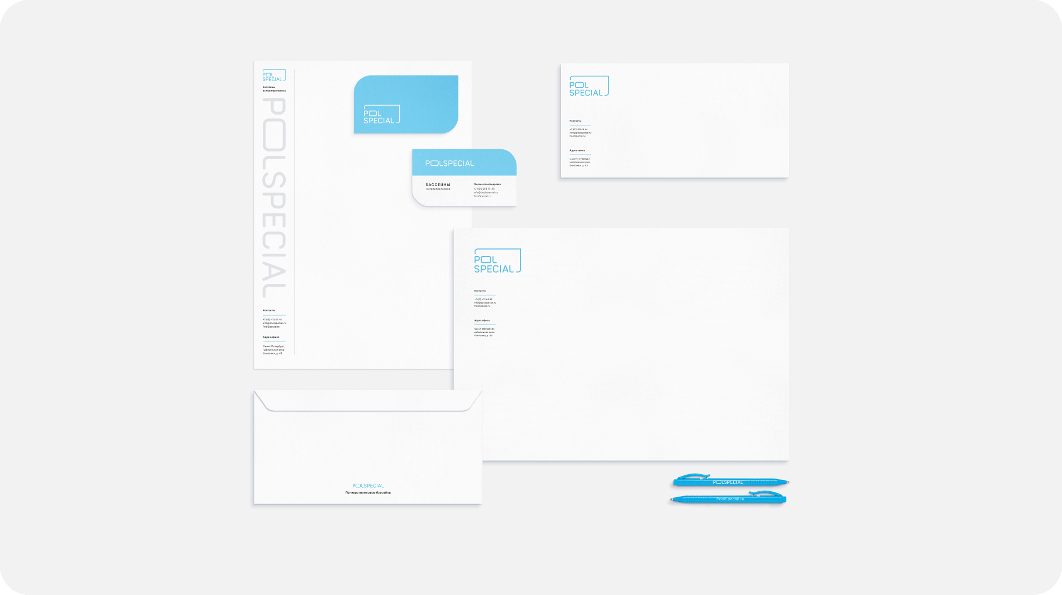3. Придумали айдентику: логотип в форме бассейна, дружелюбная графика, полный набор фирменных носителей — от визиток до опросных листов и упаковки.