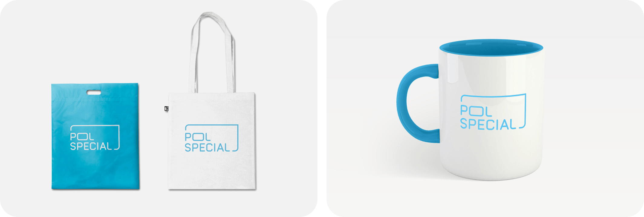 Логотип имеет форму бассейна, дополнительно сделано упрощенное начертание логотипа.
