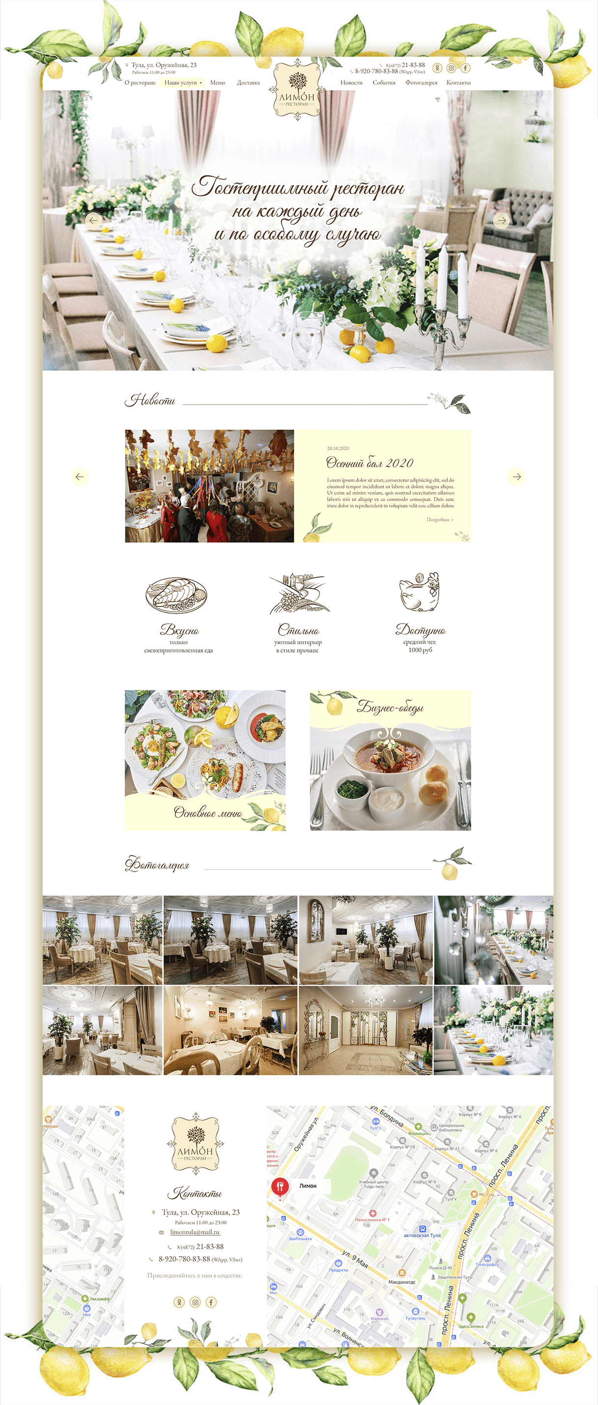 В период пандемии заведения общественного питания, у которых еще не было своего сайта, задумались о необходимости обзавестись им и быть представленными онлайн. Для многих клиентов сайт и соцсети ― это первые точки касания при знакомстве с кафе или рестораном: прежде, чем забронировать столик, люди хотят ознакомиться с меню и увидеть интерьер, где предстоит провести вечер. Ресторану «Лимон» как раз и нужно было создать такую точку касания для своих будущих гостей.