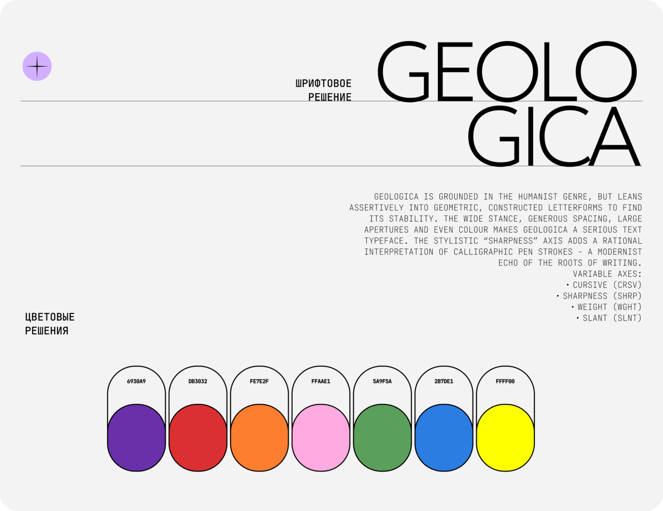 Использован шрифт Geologica, сочетающий теплоту и чёткость.