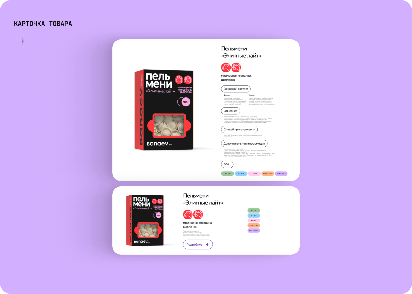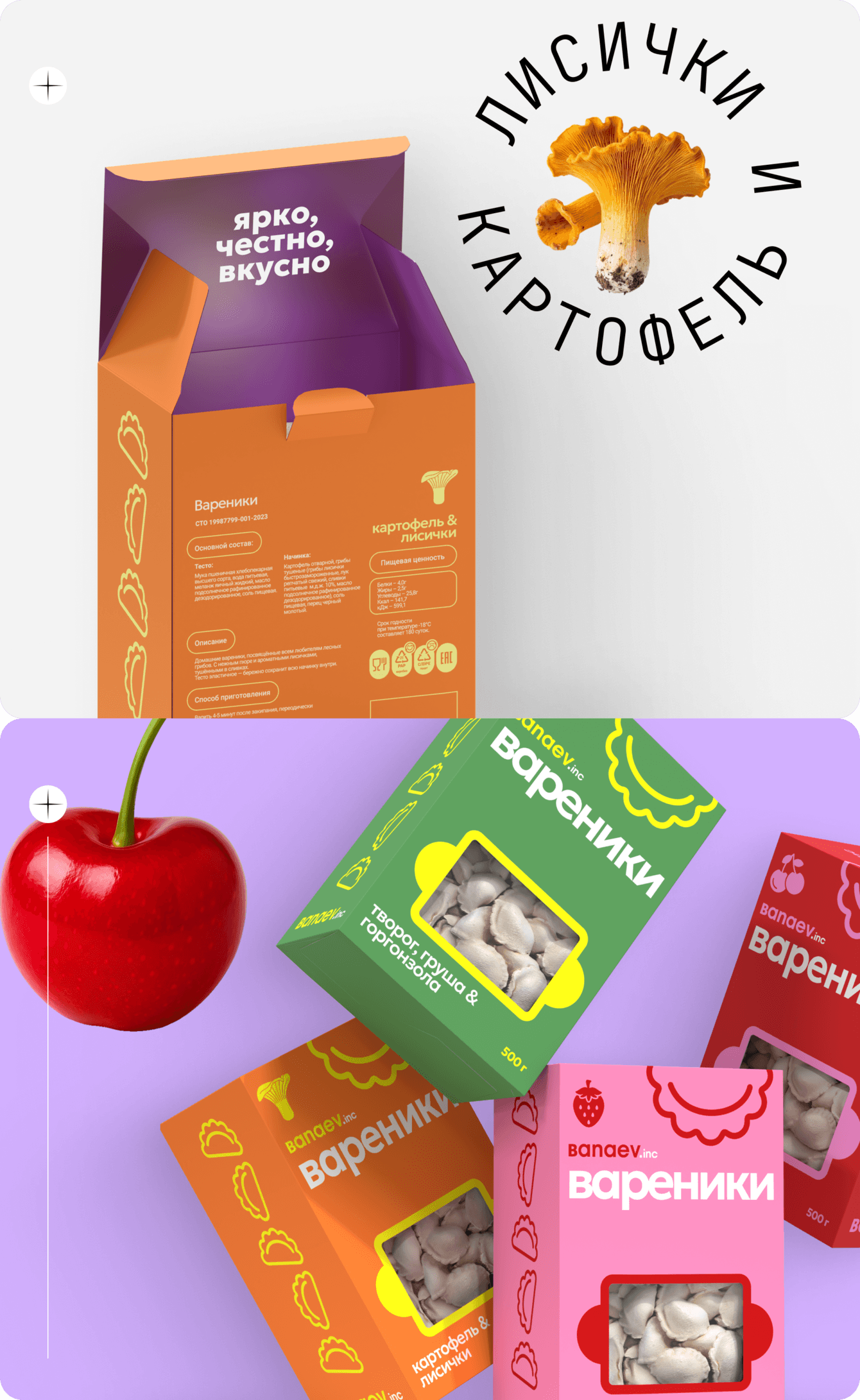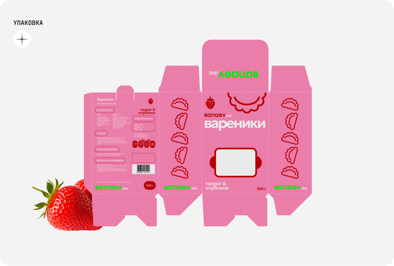 - Интегрировано прозрачное окно в форме вареника для демонстрации продукта.