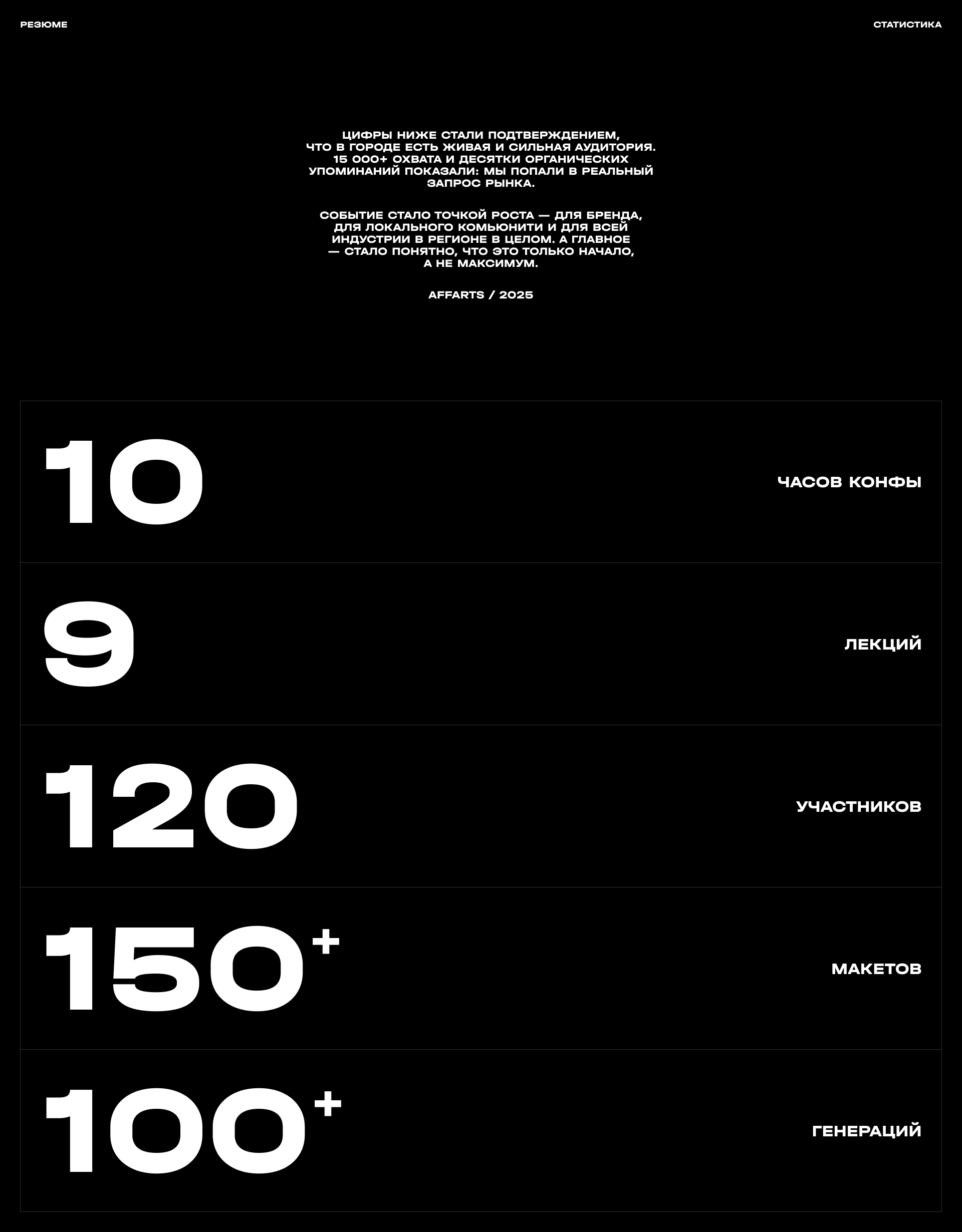 Это проект, в котором сошлись сразу несколько ролей — мы одновременно были и заказчиком, и исполнителем, и аудиторией. Поэтому каждое решение проходило через нас максимально честно: что действительно зацепит, что будет работать, что люди захотят унести с собой. Отсюда и уровень проработки — айдентика, мерч, сайт, оформление — всё собрано в одну цельную историю, без компромиссов.