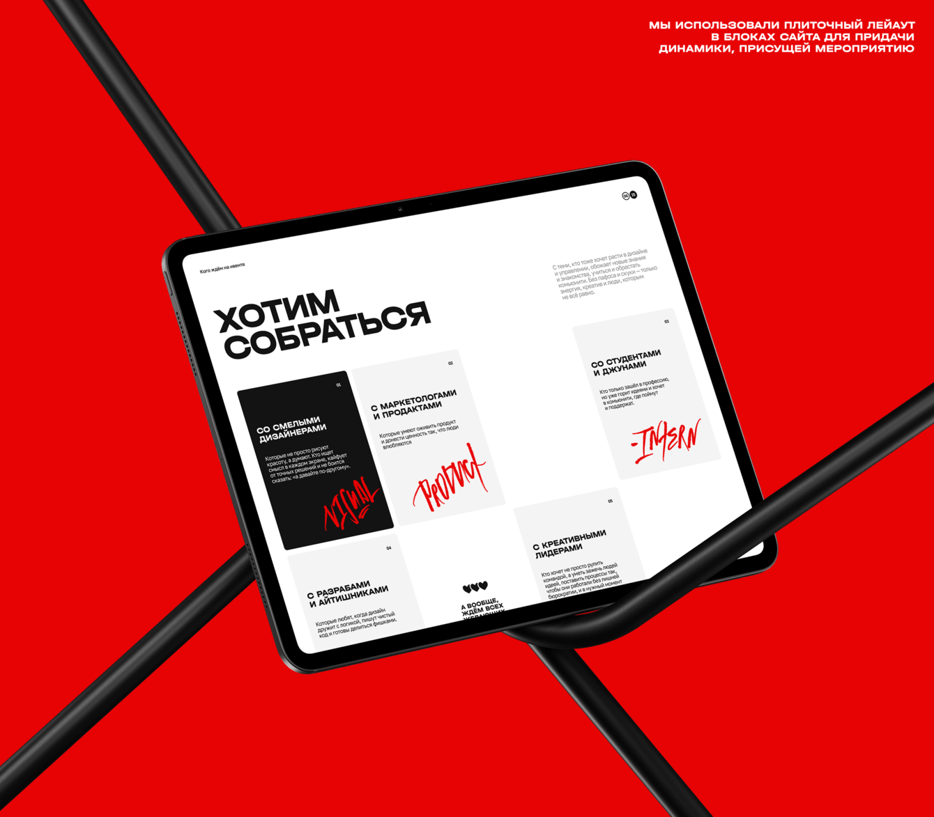 Целевая аудитория встречи — молодые ребята, которые устали от унылого и скучного. Мы рассчитывали вдохновить их сочным и стильный визуалом.