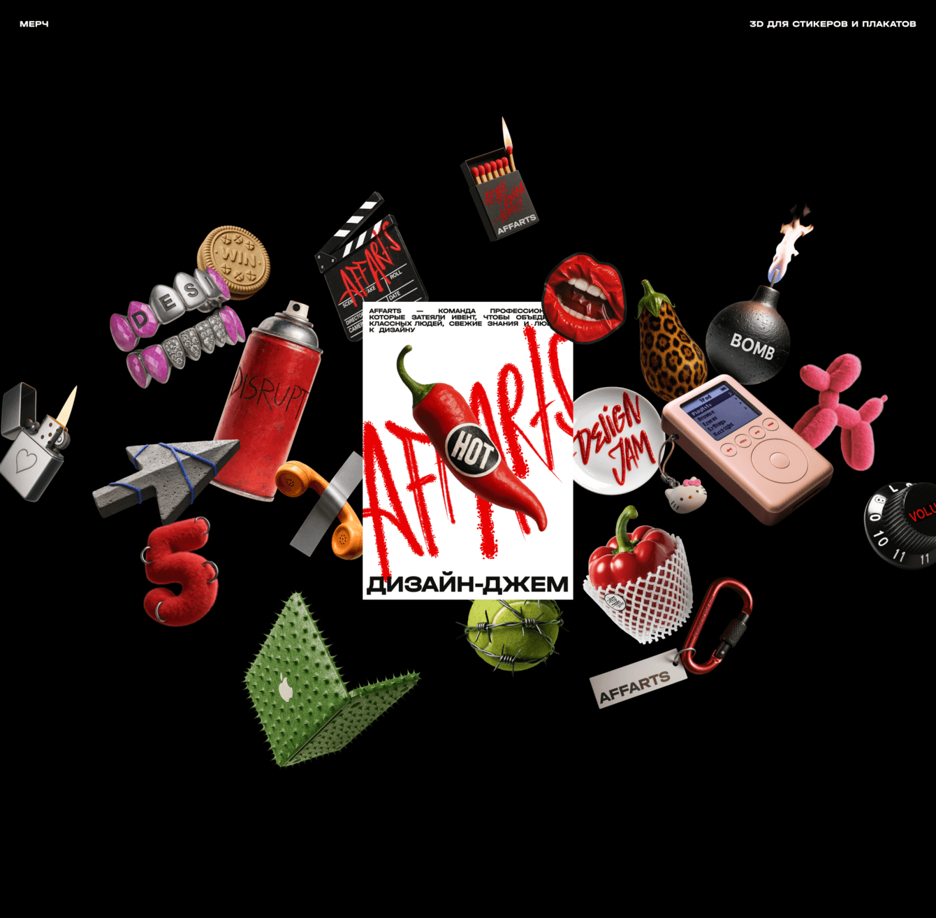 Мы построили стиль на ярких, необычных 3D-элементах и граффити-надписях — всё генерировали в ChatGPT. В 3D-графике отказались от «плоских мультяшек» — старались сделать её реалистичной. Все наработки позже перешли на сайт, в презентации, стикеры и эмодзи-пак нашего агентства.