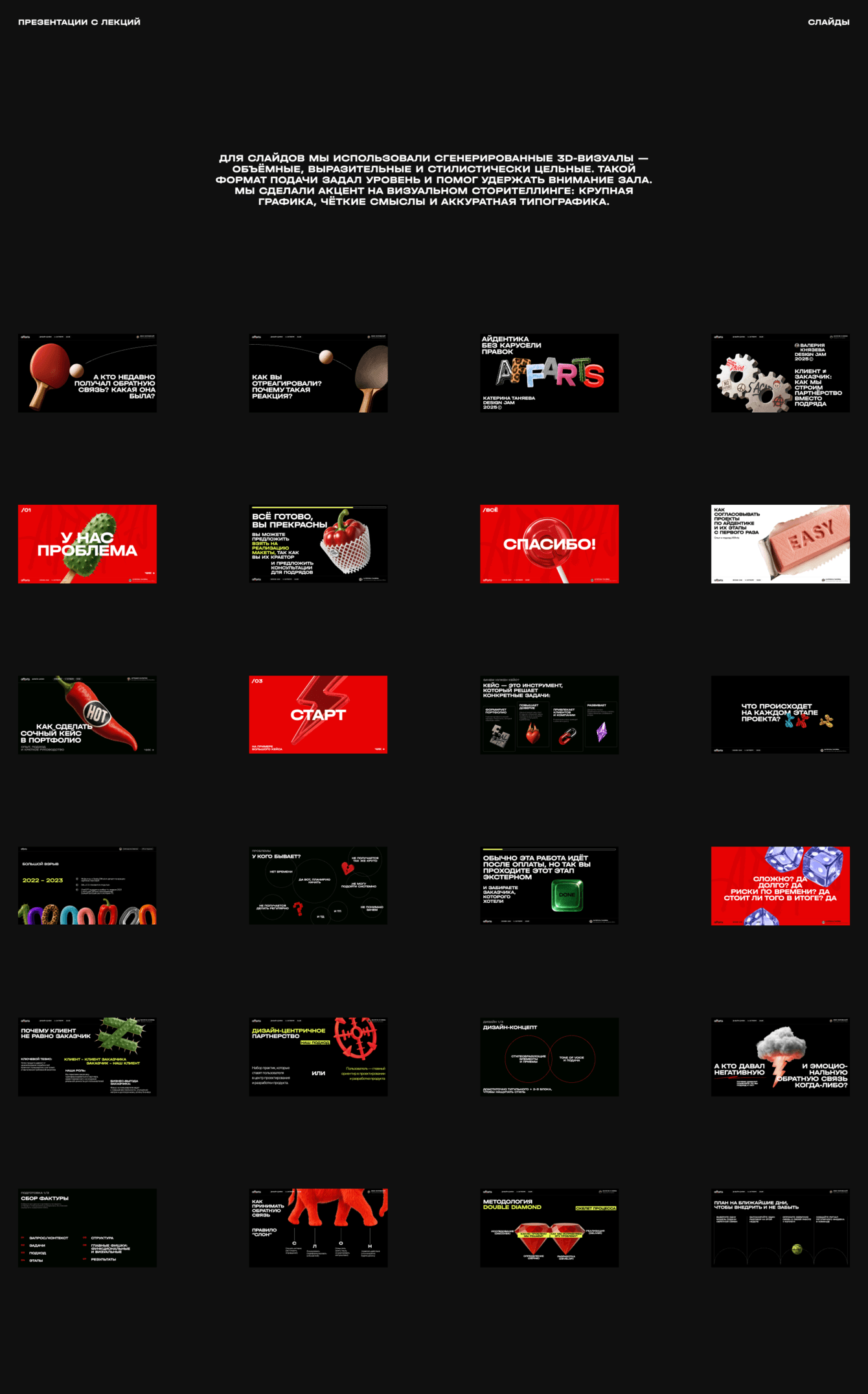 — заставках слайдов и дизайне лекций. Все презентации задизайнены в одном стиле и красиво выводились на большом экране;