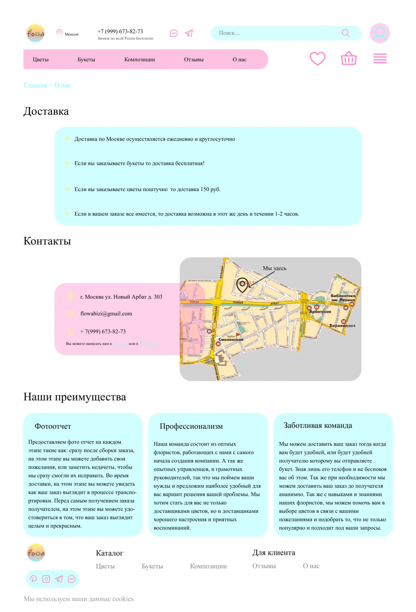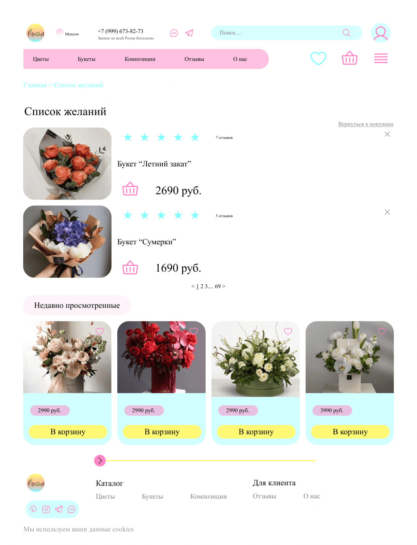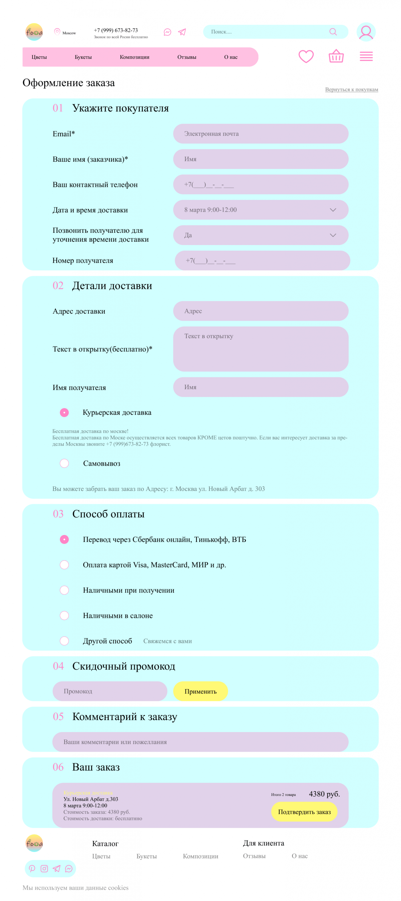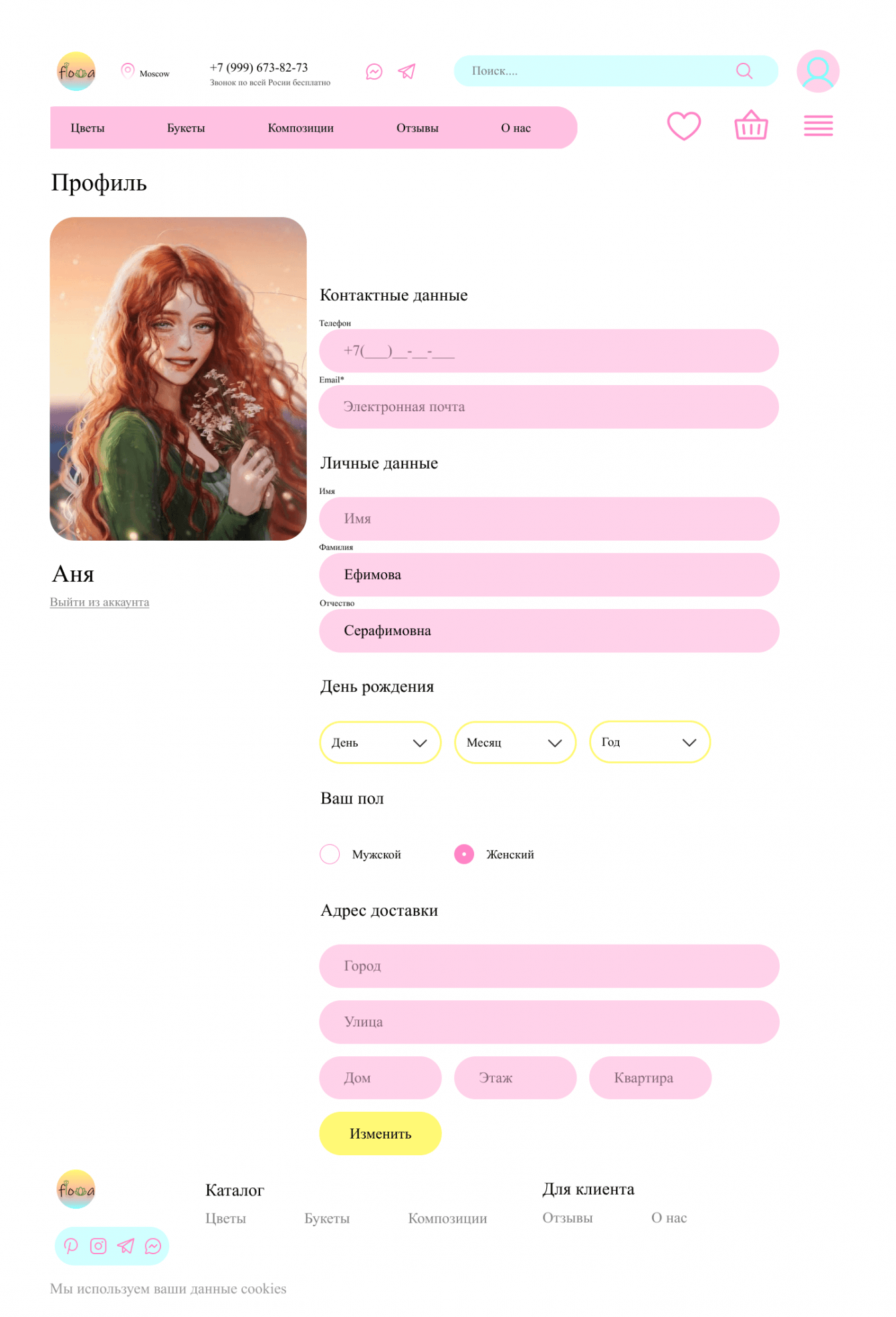 Я создала 8 страничек: главная, каталог, карточка товара, корзина, список желаний, оформление заказа, личная страничка и информационная страничка.