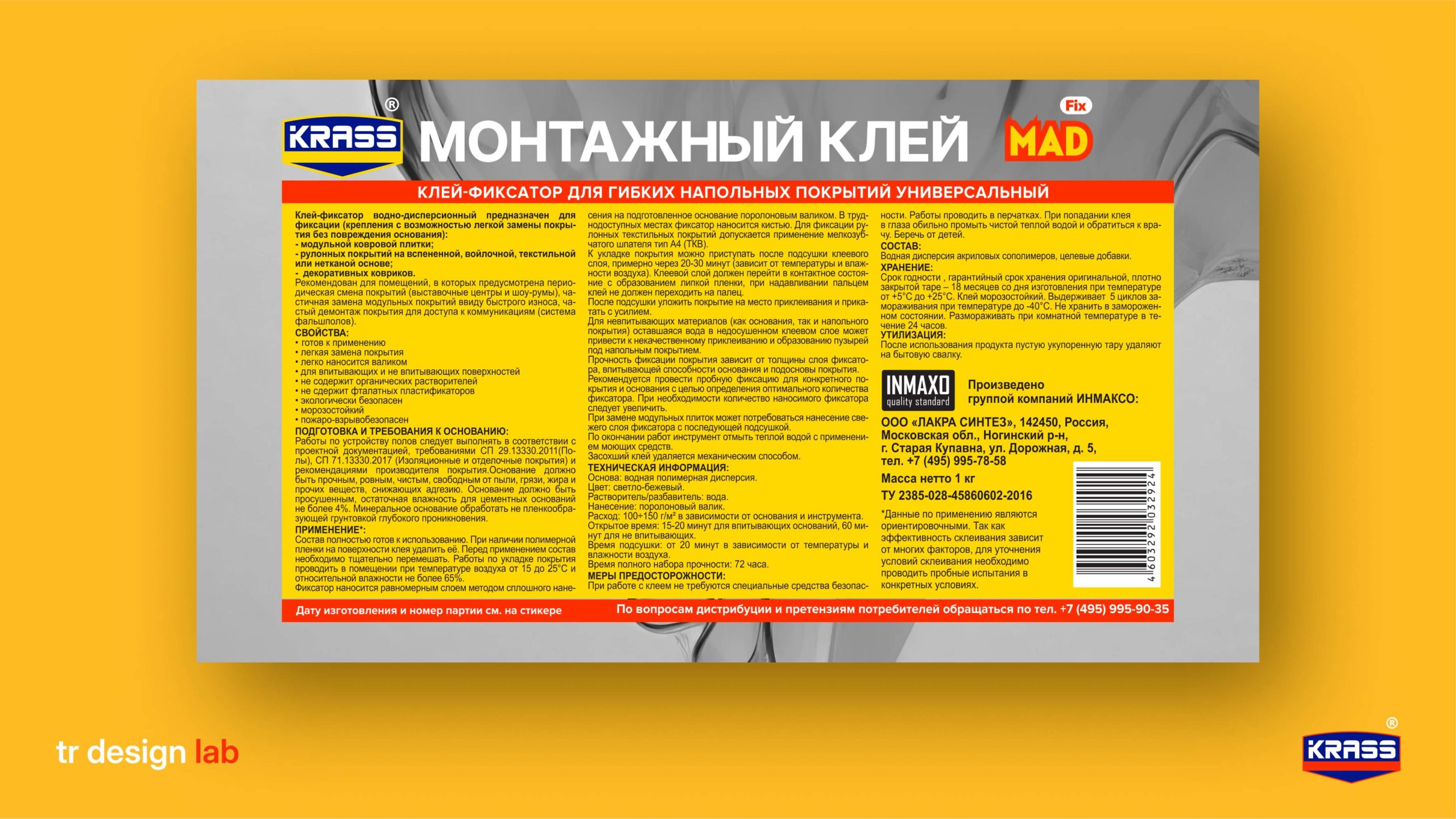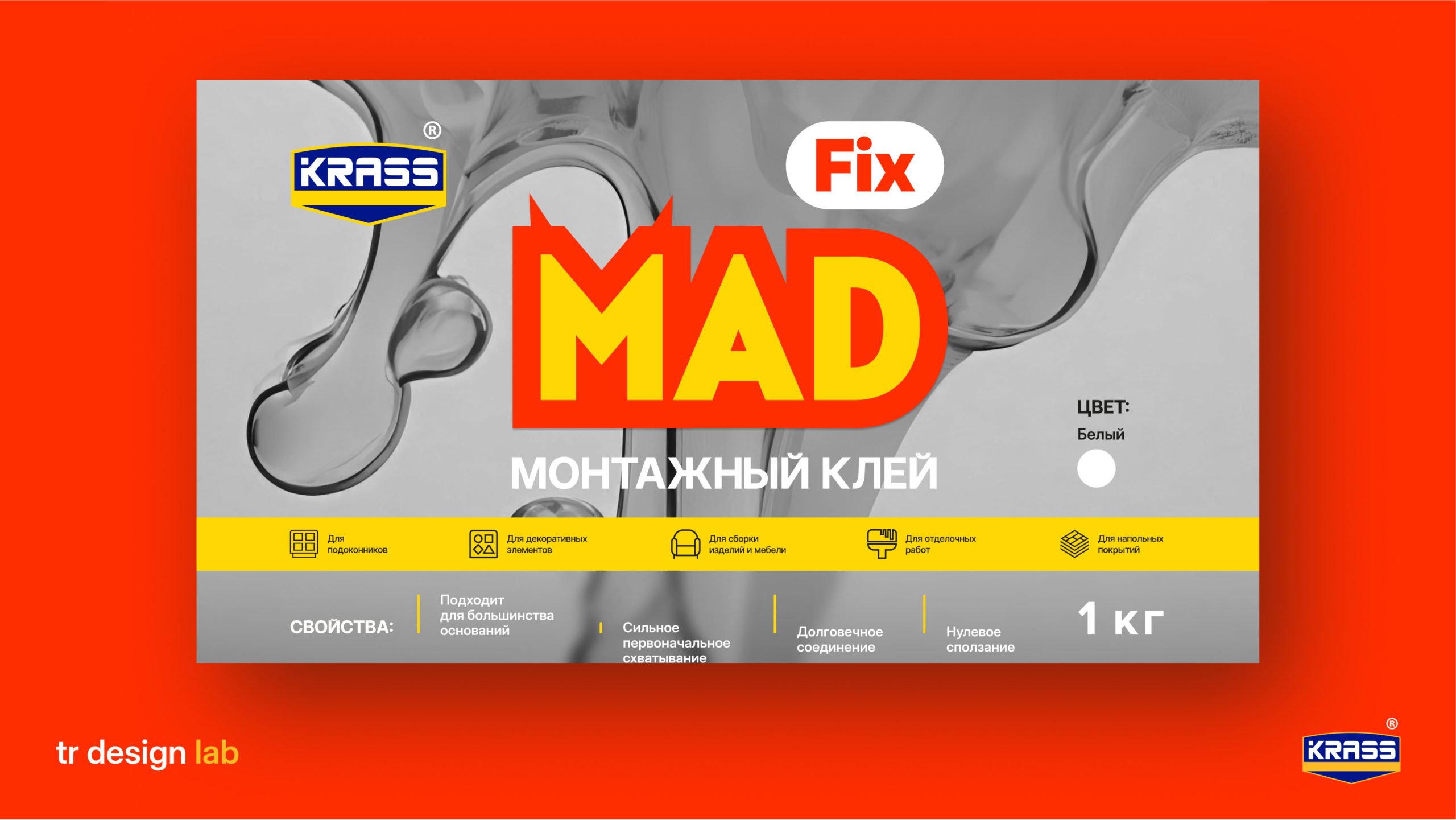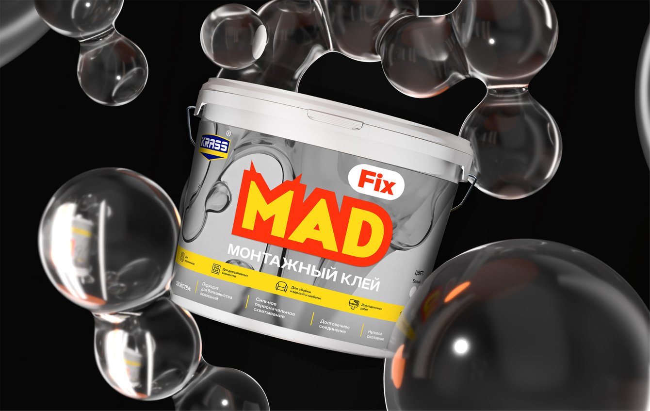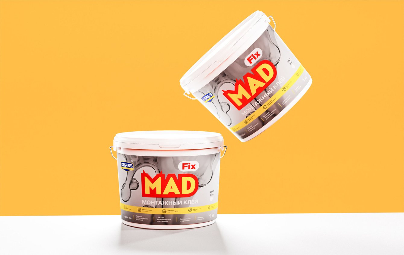 Дизайн этикетки «Mad Fix» искусно обыгрывает контраст между традиционным образом монтажного клея как серьезного и скучного продукта и позиционированием «Mad Fix» как безумного, но эффективного решения.
