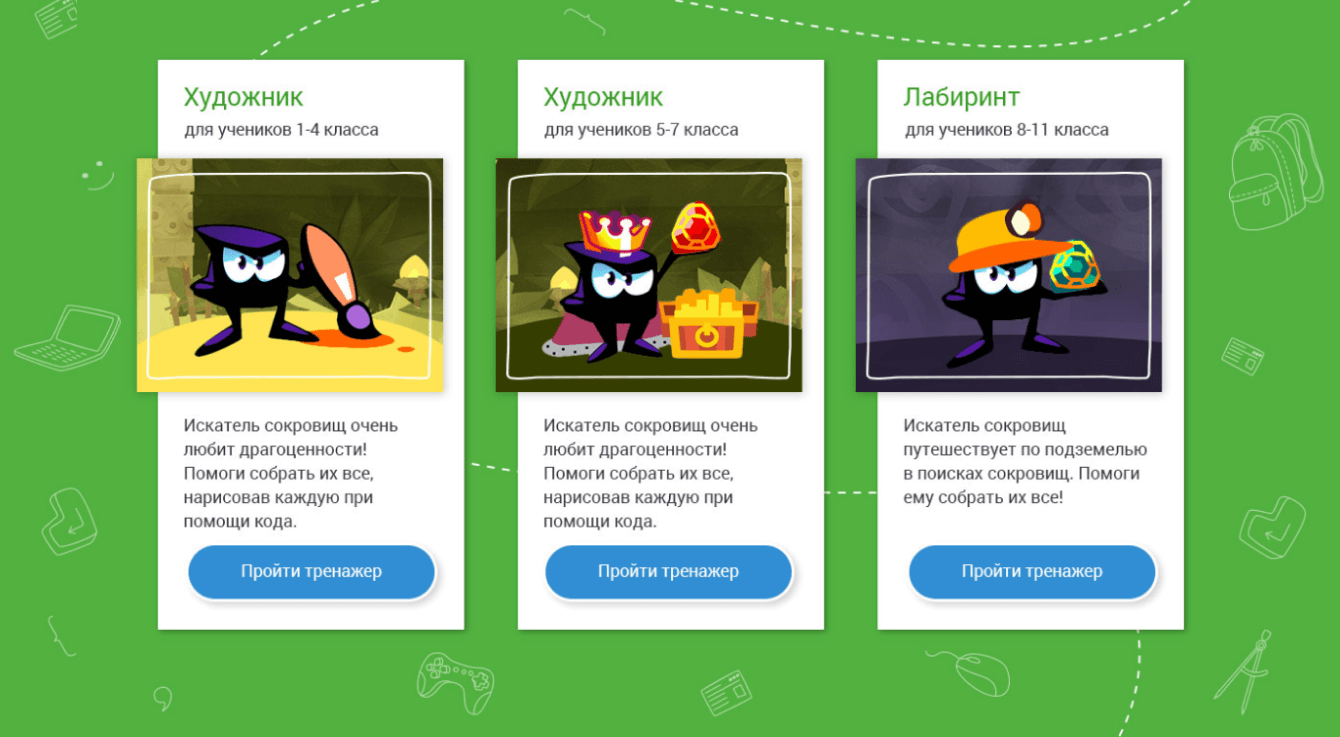 — создали тренажеры с десятками разных уровней, анимированными персонажами и игровыми элементами.