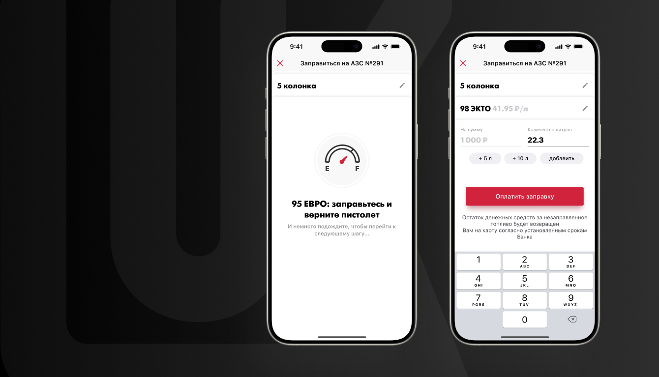 После релиза нам доверили поддержку и развитие продукта. Главные цели, которые предстояло достигнуть, — ускорить процесс заправки на АЗС, разгрузить операторов, а также упростить выбор и покупку сопутствующих товаров.