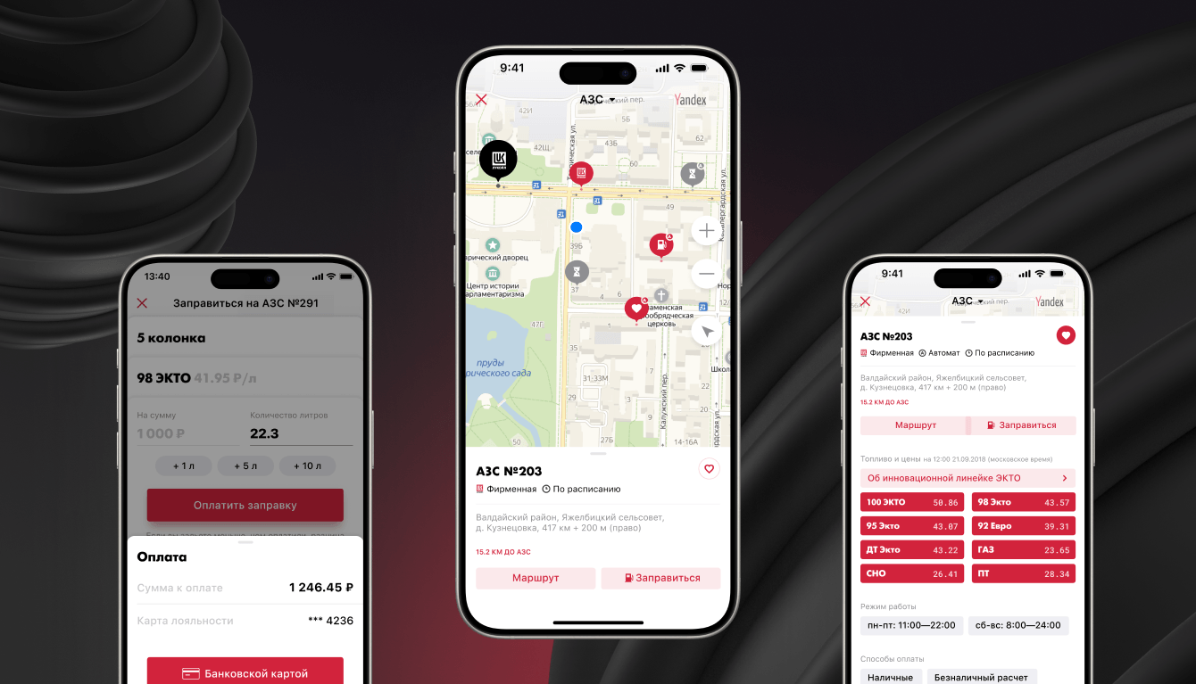 Сделали мобильное приложение АЗС «Лукойл», которое решает ряд важных задач. В нем водители могут оплачивать топливо и другие товары, пользоваться виртуальной бонусной картой, искать ближайшие АЗС, узнавать об актуальных акциях и специальных предложениях, заказывать сервисные услуги и не только.