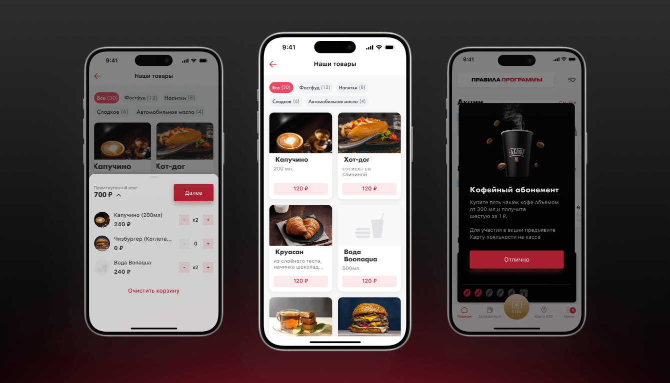 После релиза нам доверили поддержку и развитие продукта. Главные цели, которые предстояло достигнуть, — ускорить процесс заправки на АЗС, разгрузить операторов, а также упростить выбор и покупку сопутствующих товаров.
