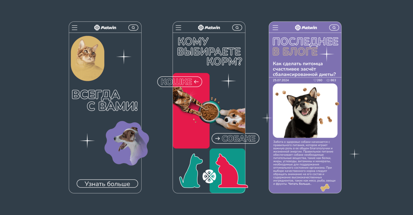 Клиент: Melwin — российский бренд премиального сухого корма для кошек и собак всех возрастов. Бренд заботится о здоровом питании питомцев, а также о вкусе и качестве корма.