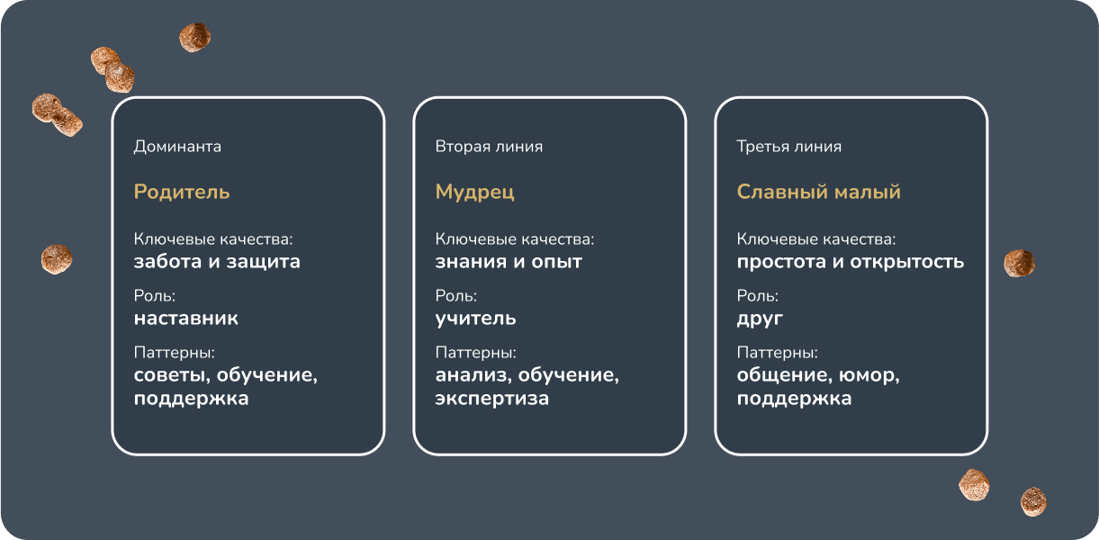 Одной из ключевых идей для дальнейшего развития стала концепция очеловечивания и персонализации образов питомцев. Мы поставили перед собой цель усилить эмоциональную связь с пользователями, сделав питомцев центральными персонажами сайта, а не просто фоном для демонстрации корма. Каждый герой получил свое уникальное имя, историю, характер и даже предпочтения в выборе корма. Такой подход позволил бы создать более глубокий и личный контакт с аудиторией, давая ощущение заботы и внимания к своим любимцам.