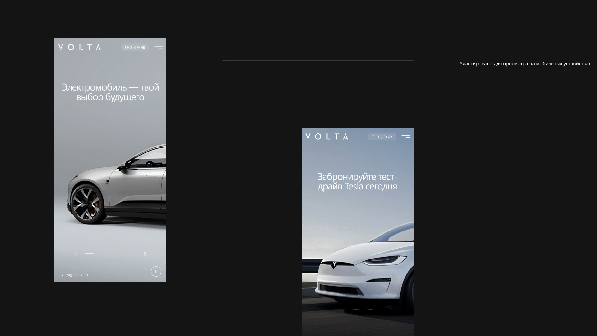 - Демонстрирует преимущества электромобилей через визуальные элементы, которые погружают пользователя в атмосферу инноваций.
