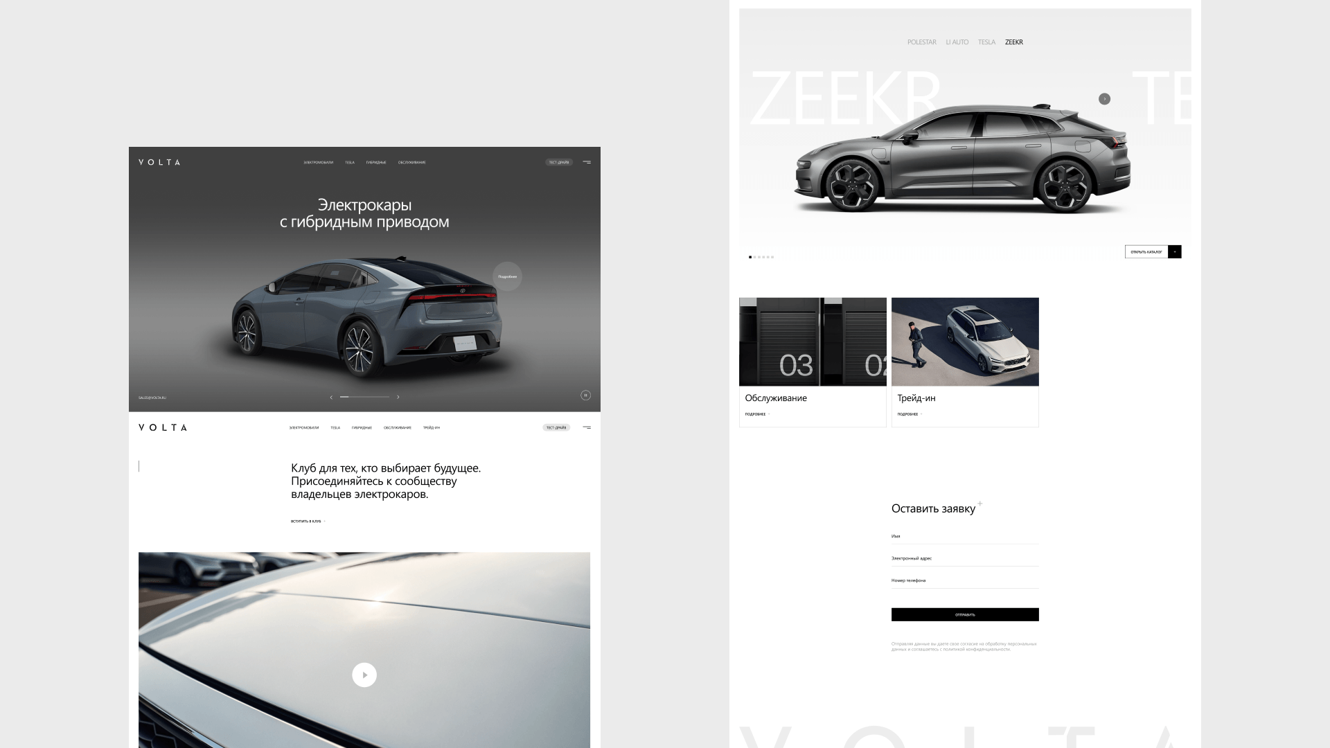 Была полностью пересмотрена концепция главной страницы. Она стала основным навигационным центром, где посетители могли легко выбрать подходящую модель, узнать о преимуществах электромобилей и быстро перейти к записи на тест-драйв.