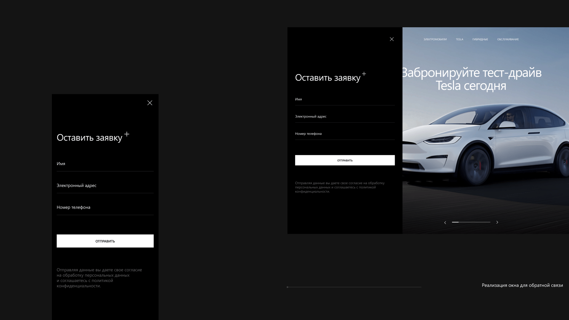Реализовали всплывающие окна для упрощения процесса записи на тест-драйв и получения обратной связи.