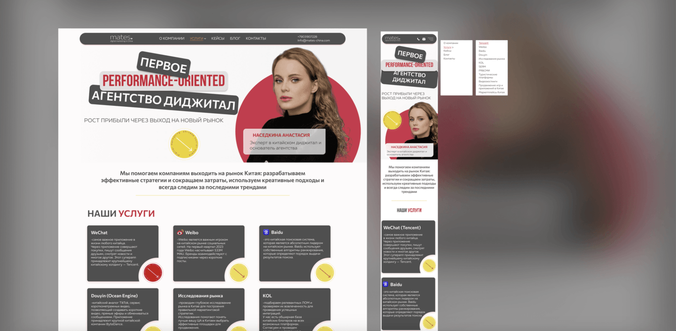 При начале работы над проектом для владельца маркетингового агентства, специализирующегося на продвижении в китайских социальных сетях, мы провели детальный анализ целевой аудитории и конкурентного окружения. Это позволило нам определить ключевые требования к функционалу и дизайну сайта.