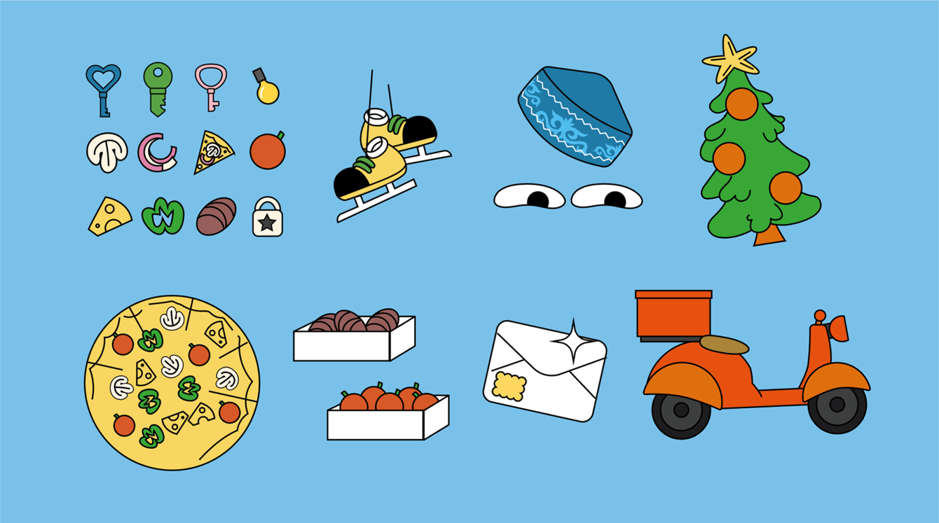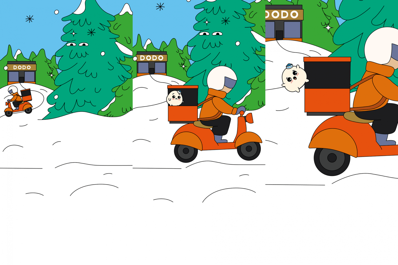Команда Додо Пицца Казахстан обратилась к нам за помощью в создании визуальных элементов к зимней игре. Игра доступна поклонникам бренда прямо в приложении для заказа пиццы.