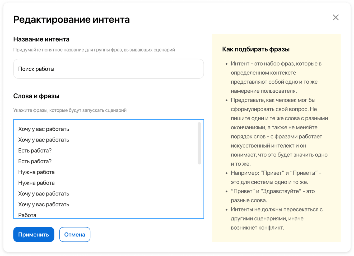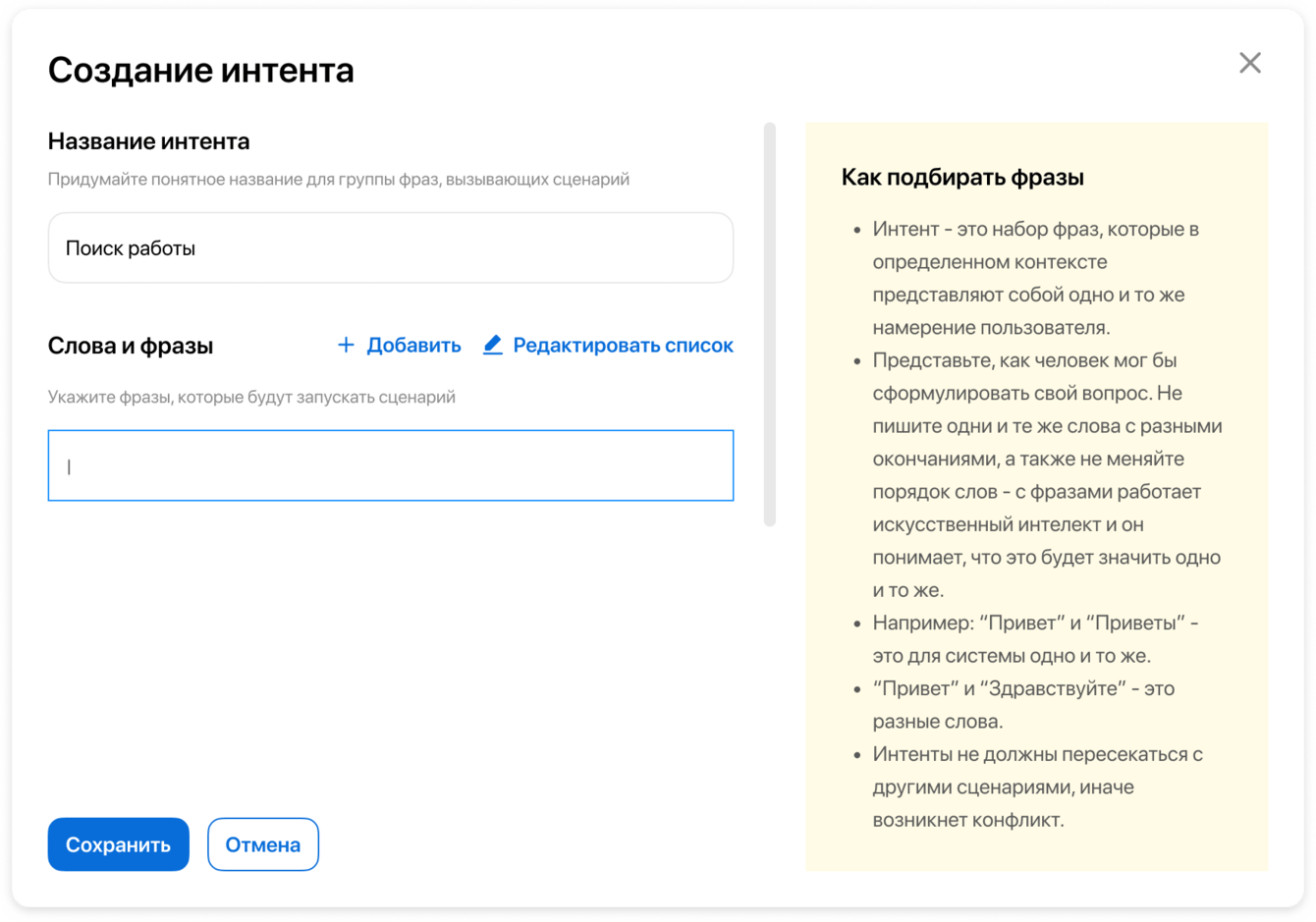 Можно сказать, что они старался впечатлить продвинутого пользователя, а мы — не отпугнуть обычного. Поэтому много и долго обсуждали как сделать. В частности, обсуждали, поймет ли пользователь слово «интент». Формулировки в интерфейсе тоже часть дизайна, и мы относились к ним так же внимательно.