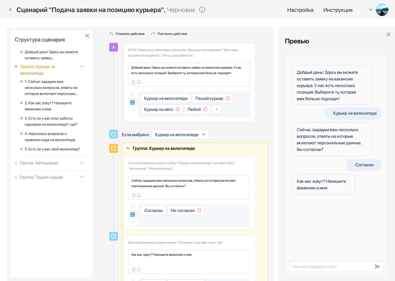 1. Разработали сбалансированный по сложности конструктор чат-ботов для клиентов Elma.