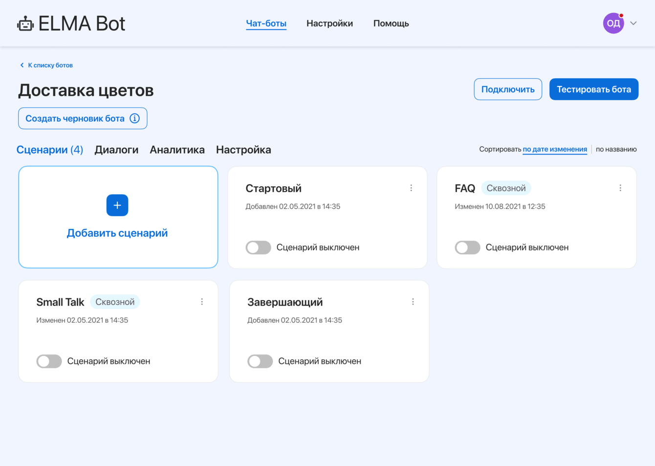 Сейчас настройщики Elma перегружены: приходится вручную решать типовые задачи. Новый интерфейс должен был переложить эту работу на самих клиентов. То есть дать им возможность собирать чат-ботов самостоятельно.
