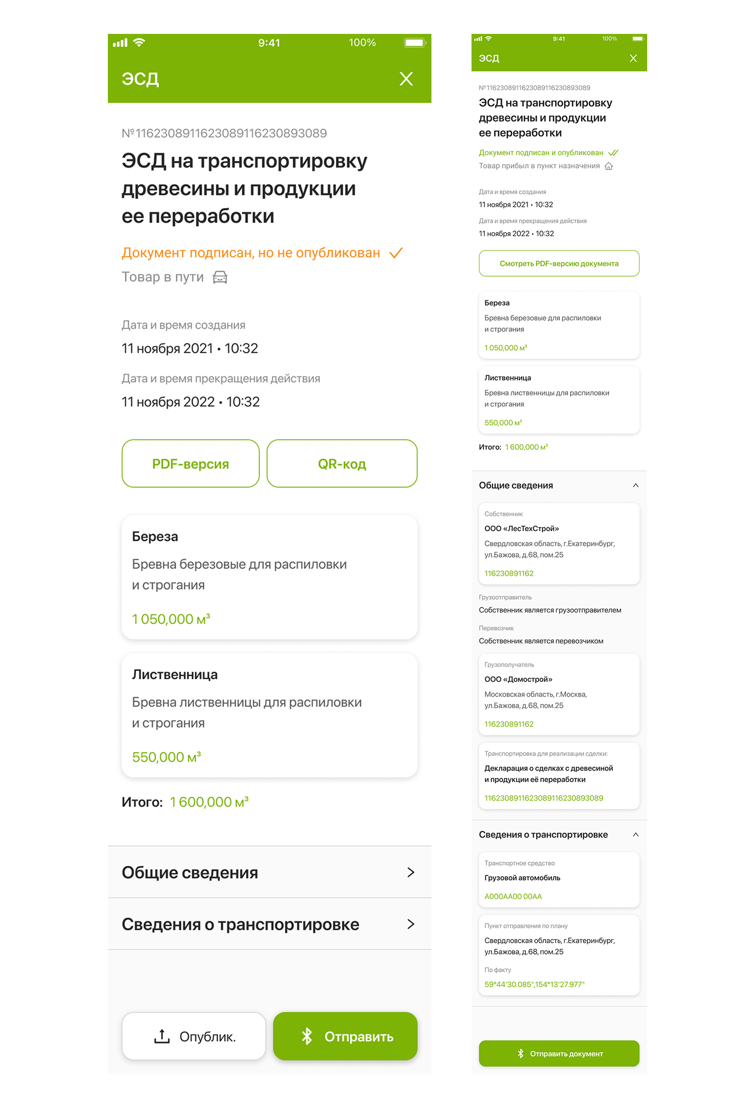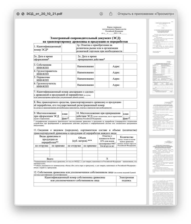 Электронный сопроводительный документ на транспортировку древесины