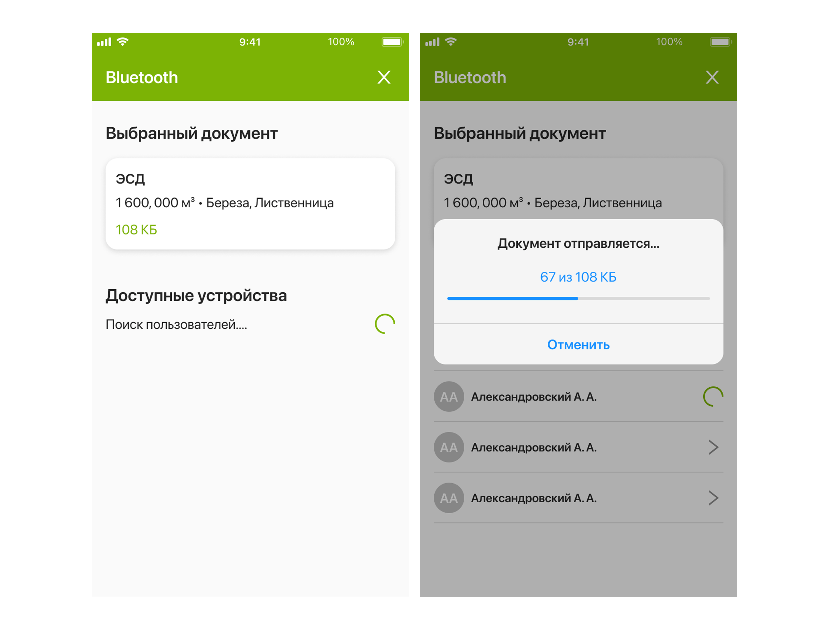 Отправка документа через Bluetooth