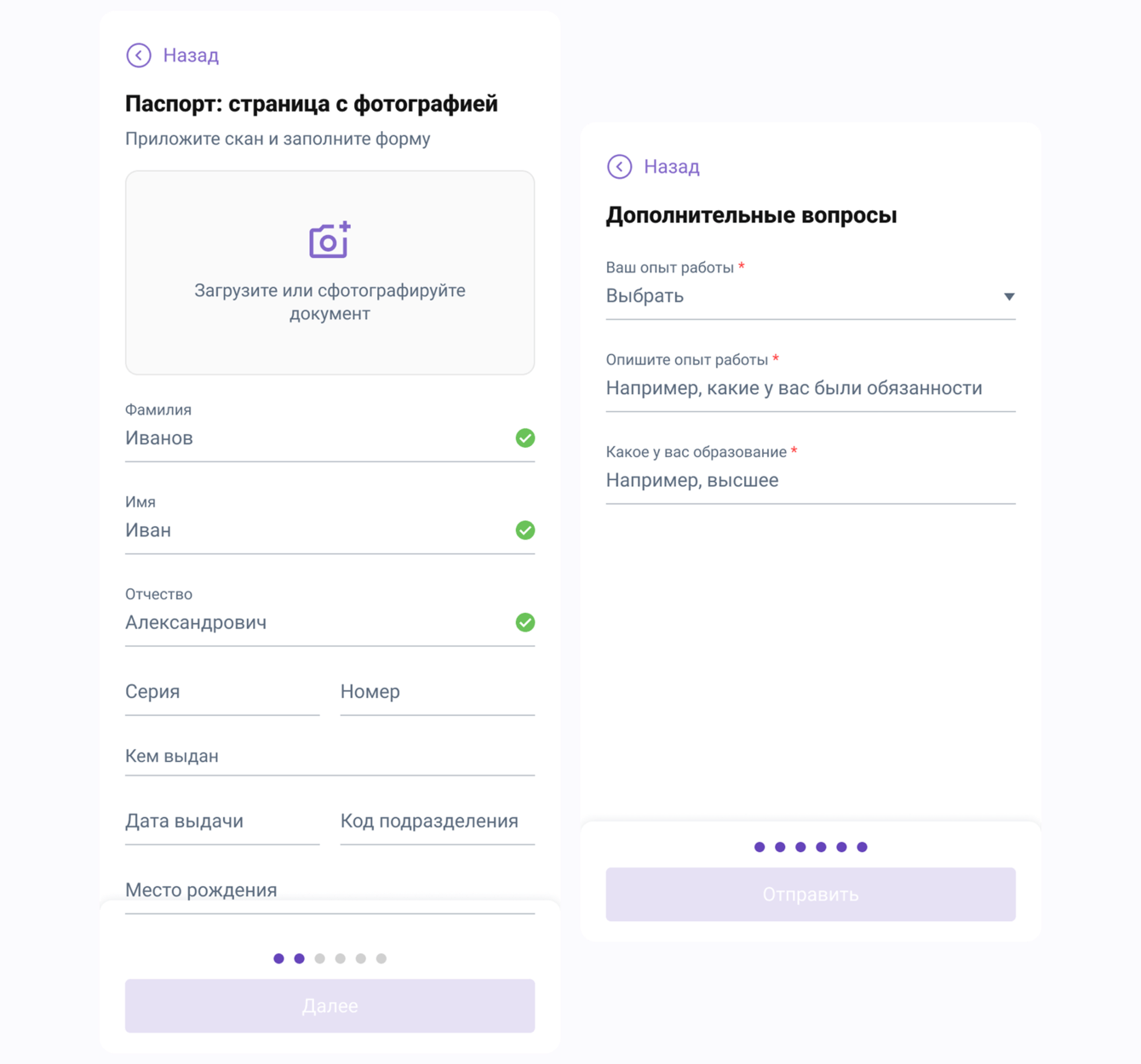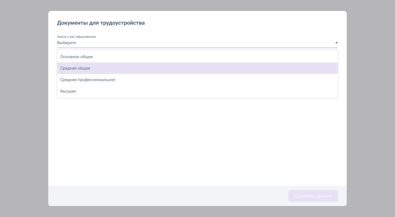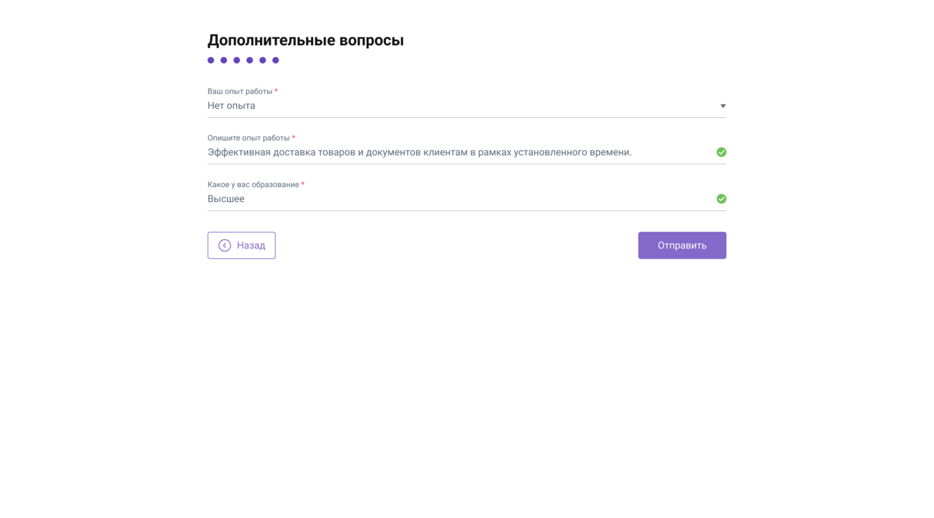 Анкета кандидата, мобильная версия. Заполнение данных
