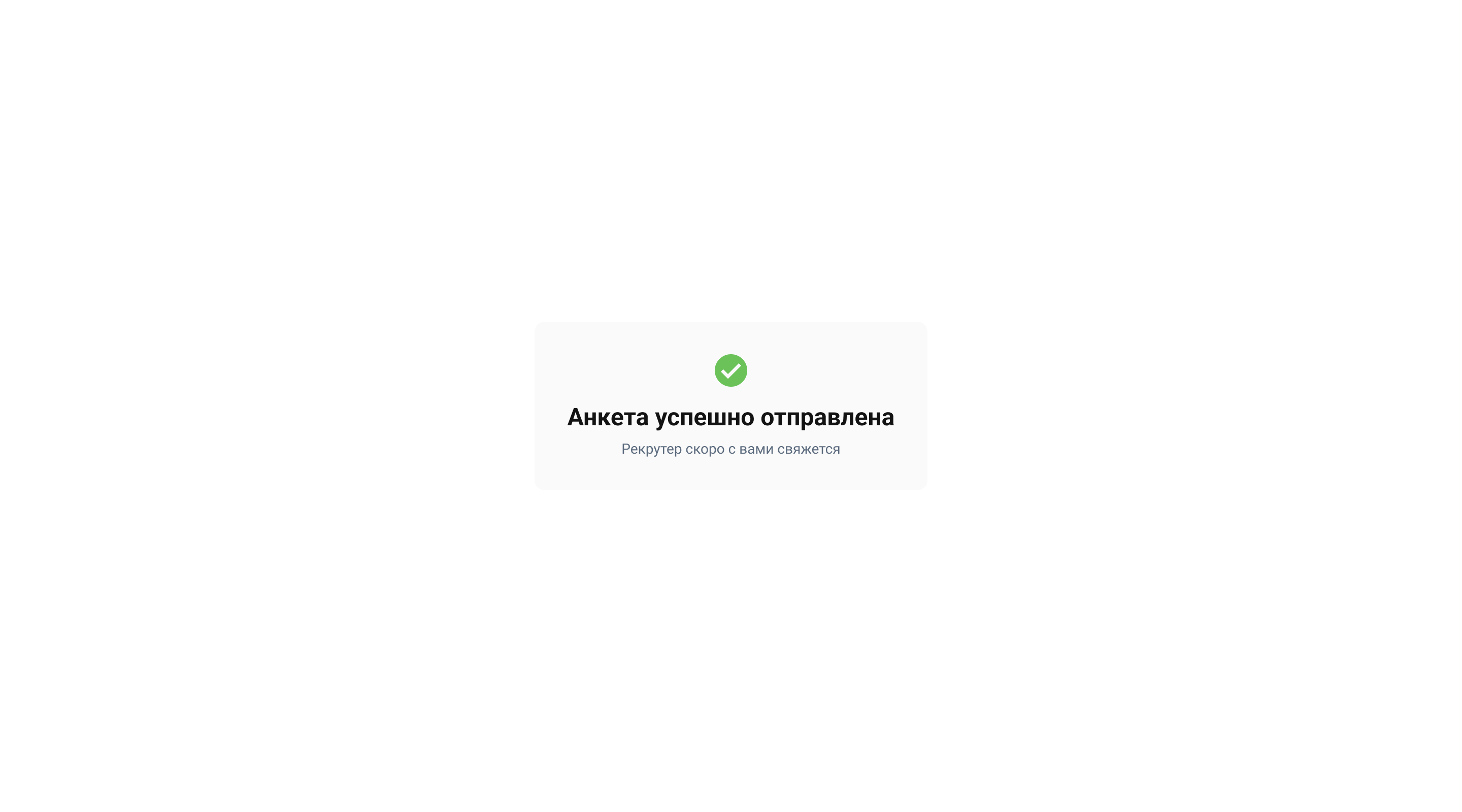 Анкета кандидата. Экран успеха