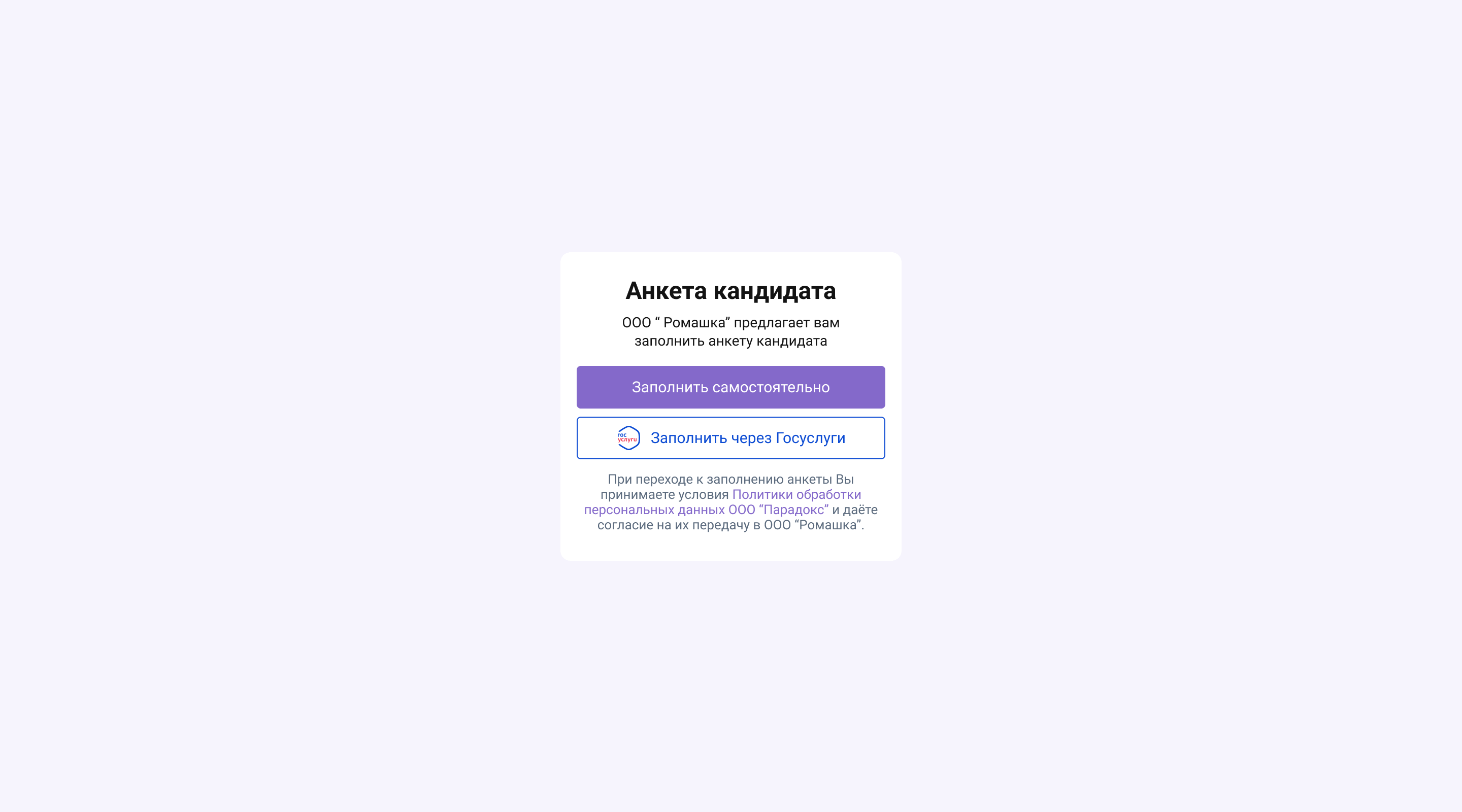 Анкета кандидата, мобильная версия. Способ заполнения и согласие на обработку персональных данных