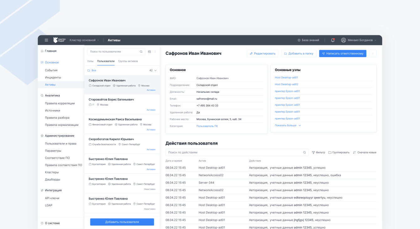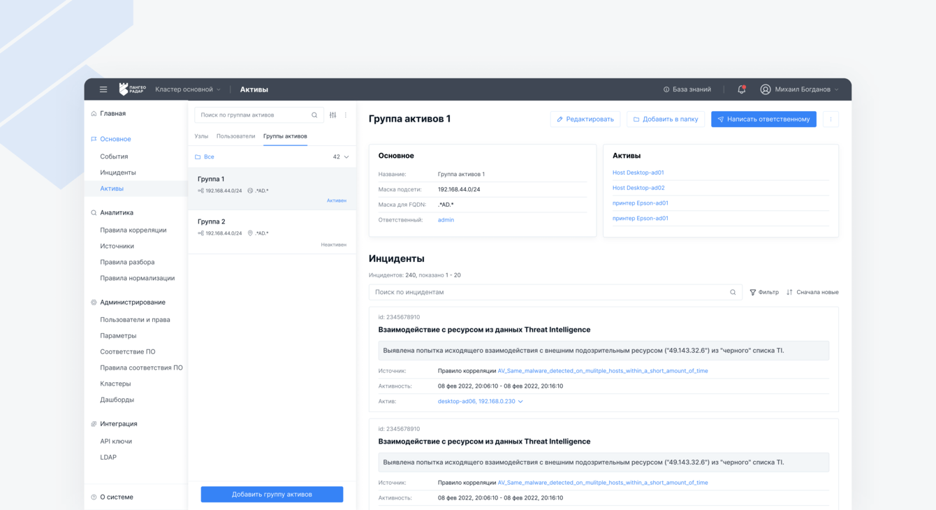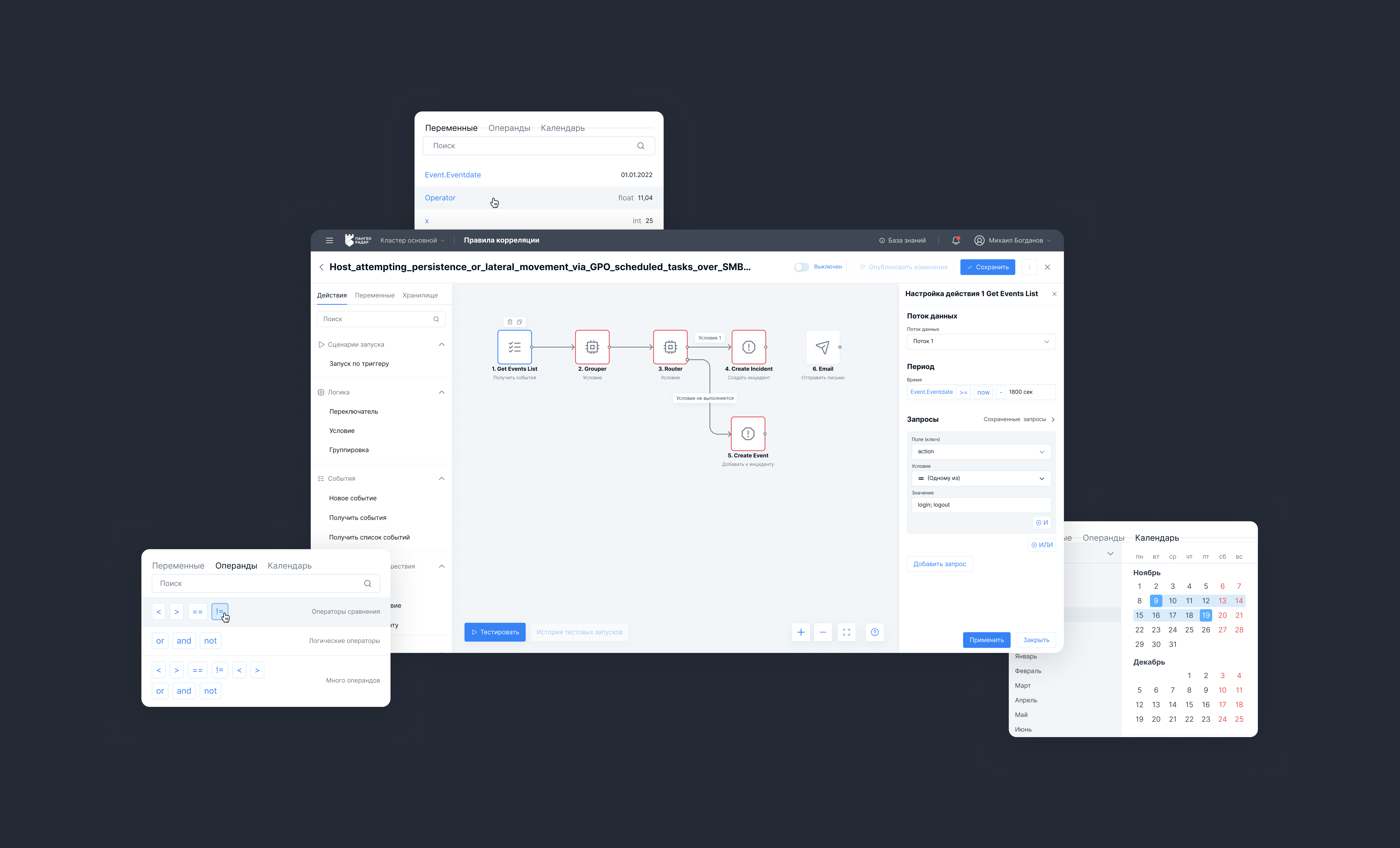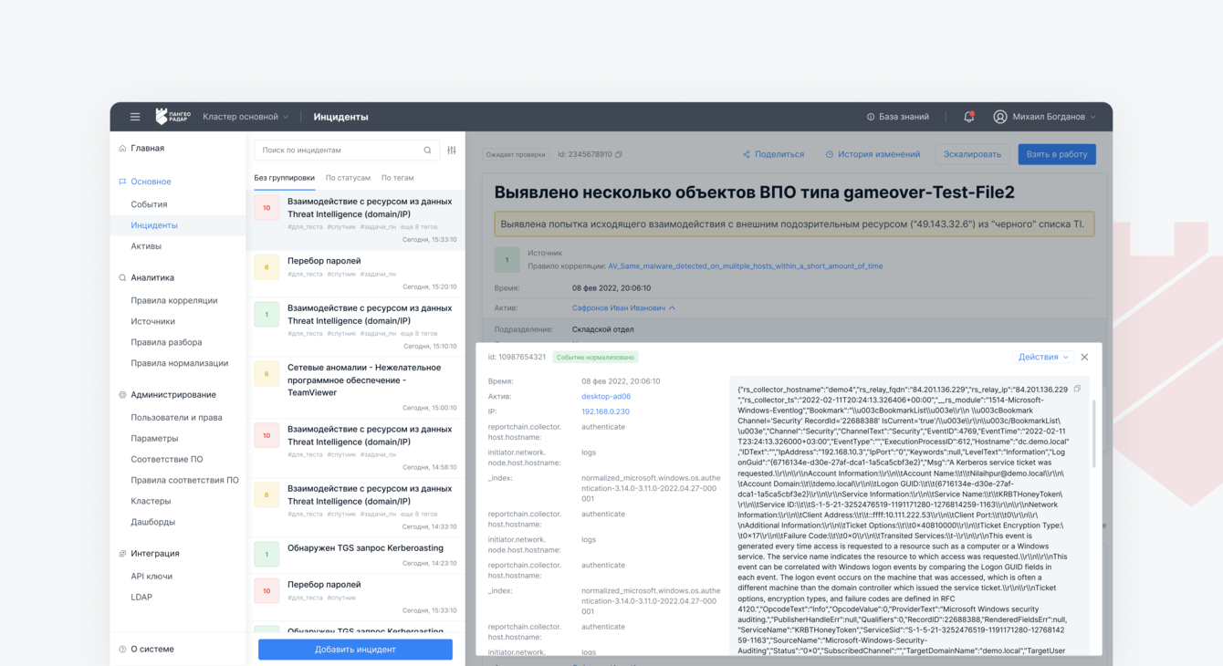 В начале проекта мы очень долго общались с коллегами из «Пангео», они показывали возможности своего продукта и рассказывали о том, как обычно работают инженеры по безопасности в таких системах.