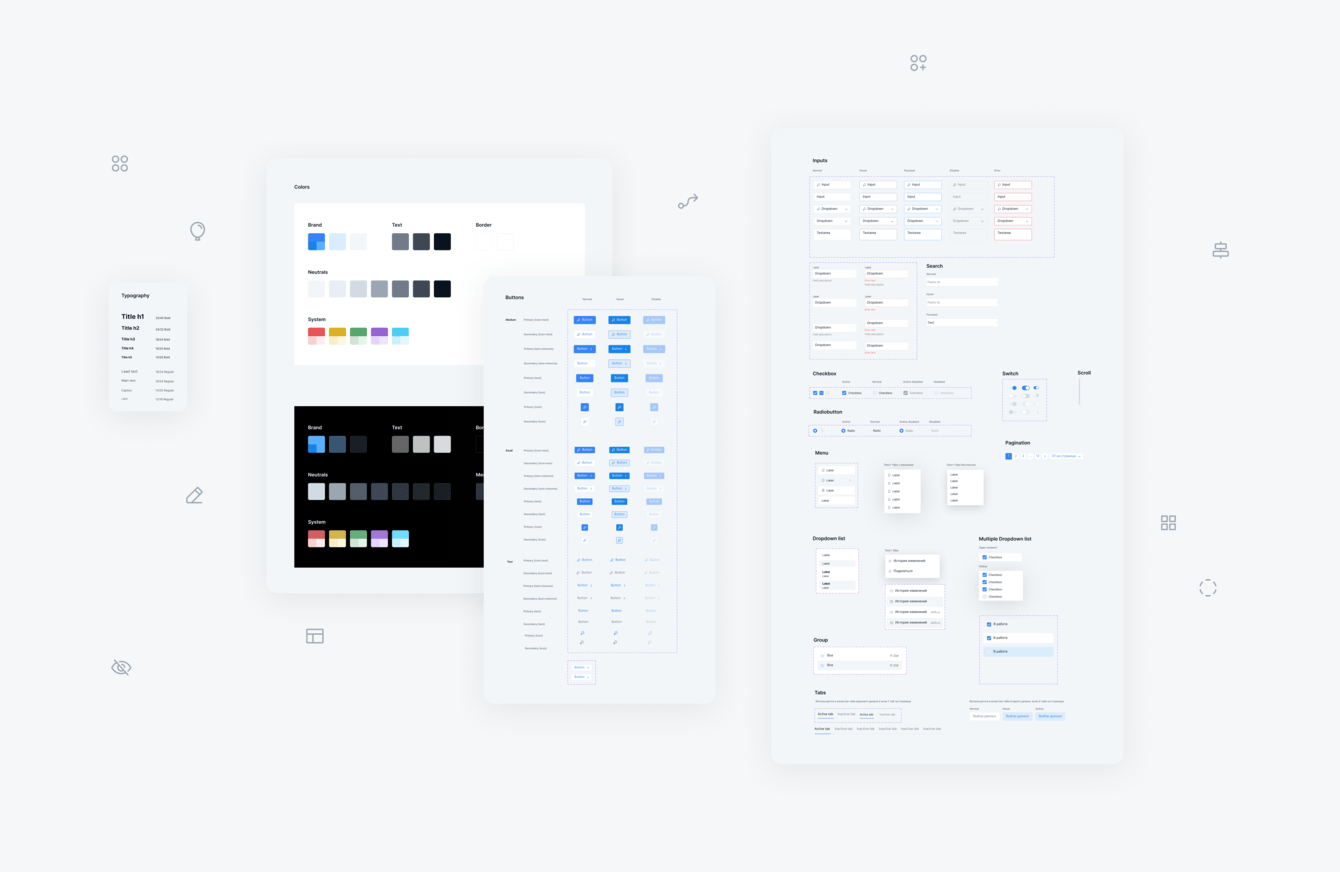По ходу работы мы собирали библиотеку компонентов, которые использовали в проекте. Это обычная практика для больших проектов, когда не используются типовые дизайн-системы.