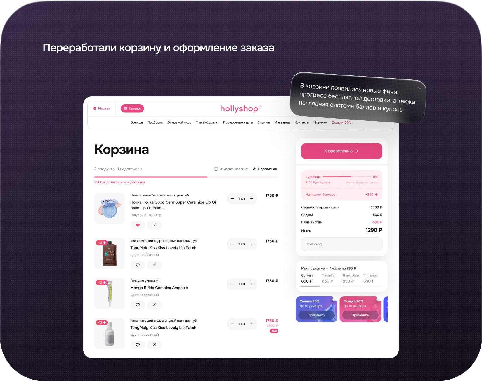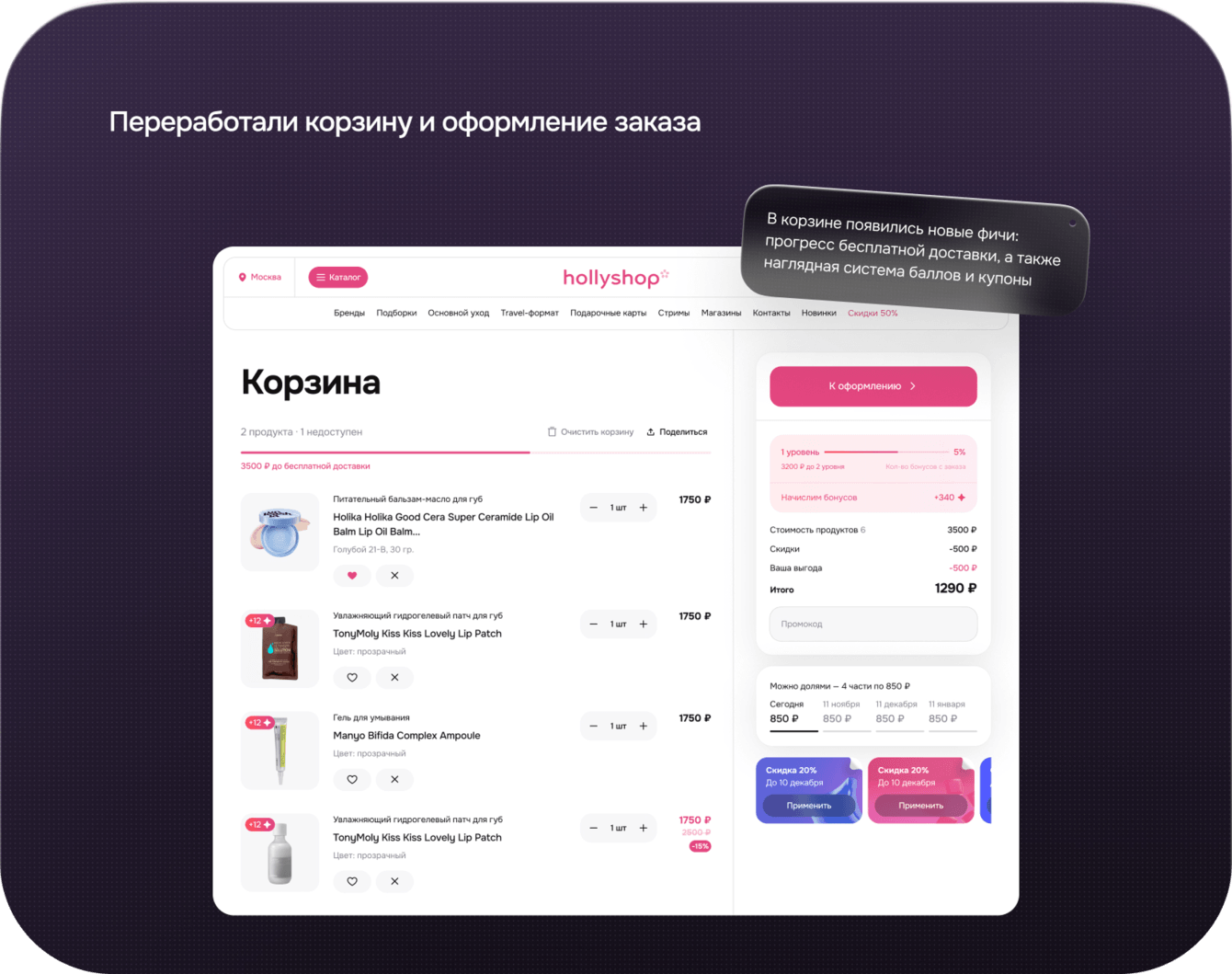 — Повышение продажи через упрощение и улучшение важных сценариев: добавление в корзину, оформление заказа, фильтрация каталога.