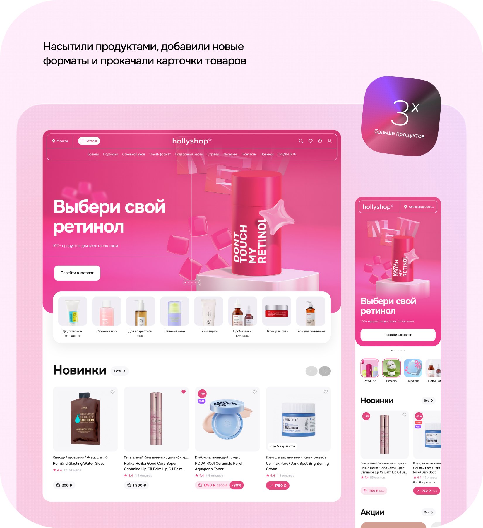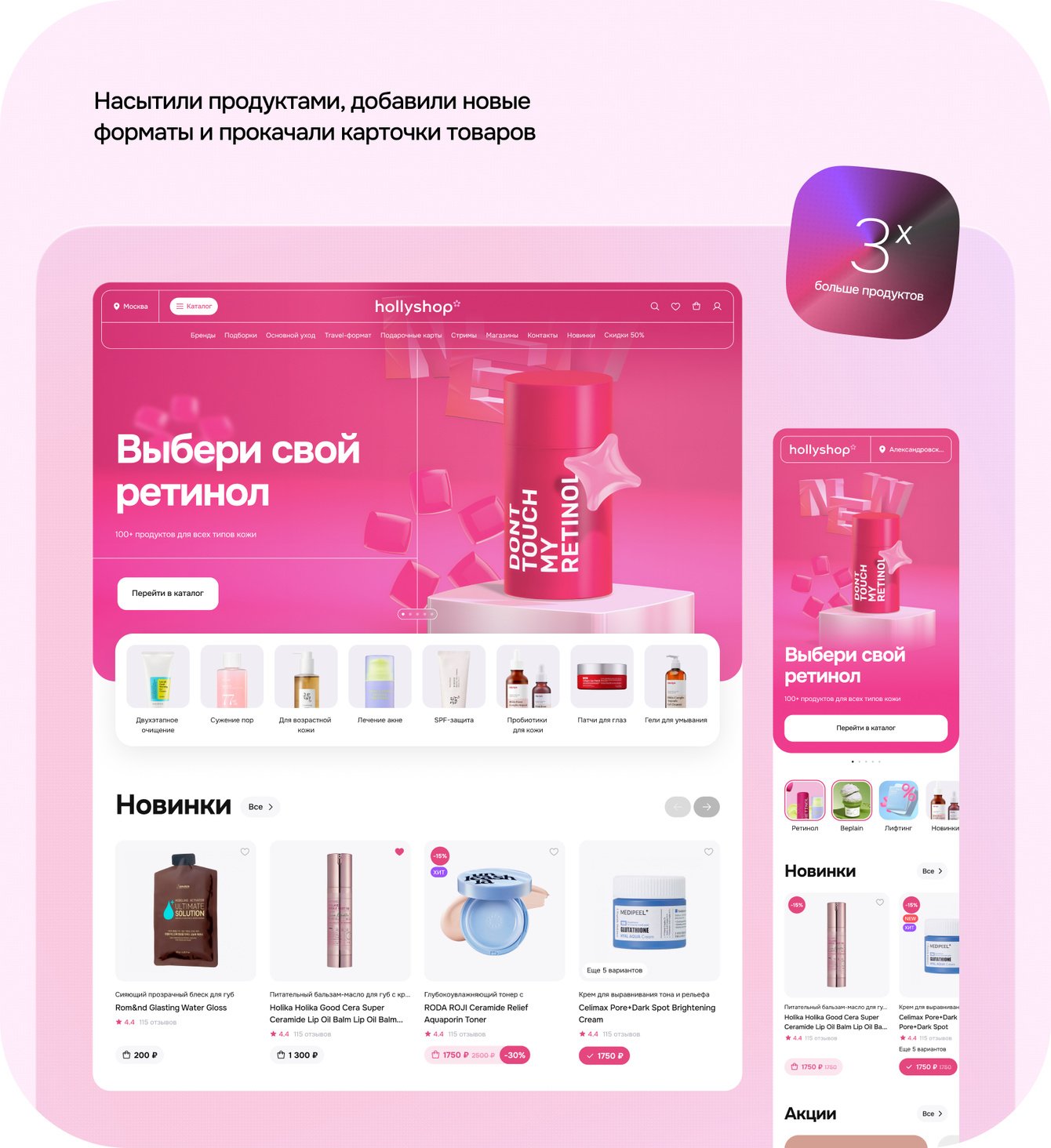 В результате сайт получился современным, стильным, соответствующим характеру бренда и фирменному стилю компании. Мы учли все пожелания клиента. При релизе новый сайт получил огромное количество восторженных отзывов от покупателей hollyshop.