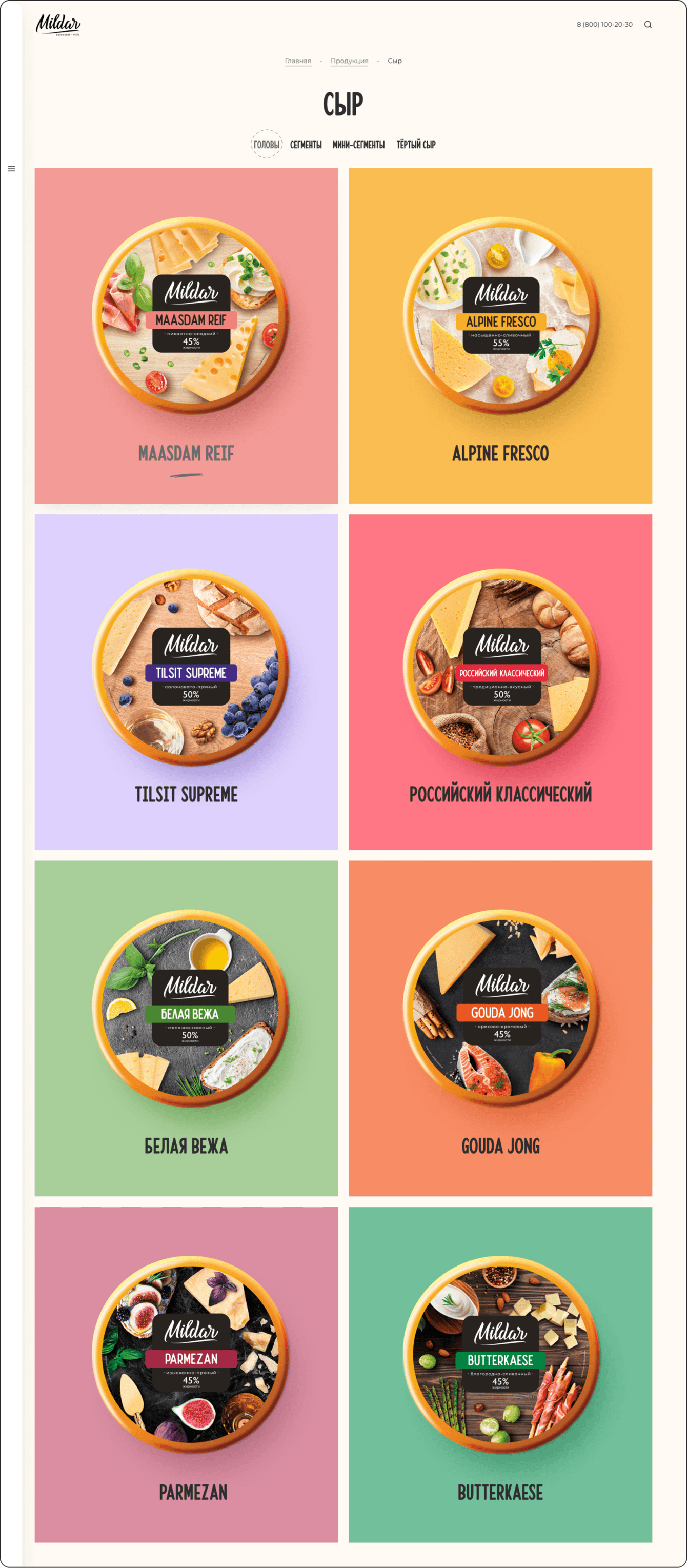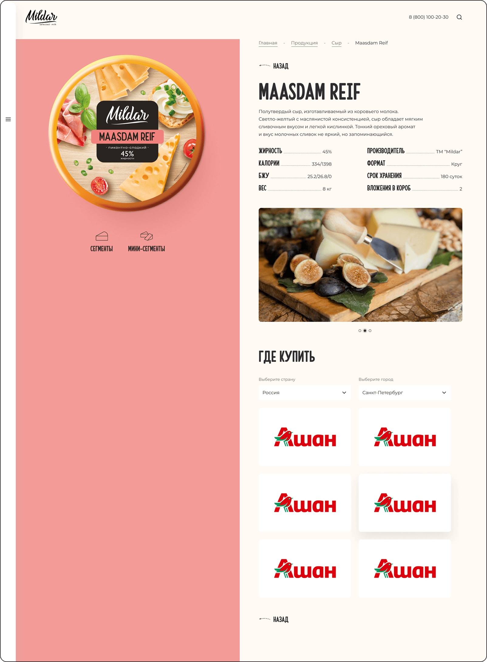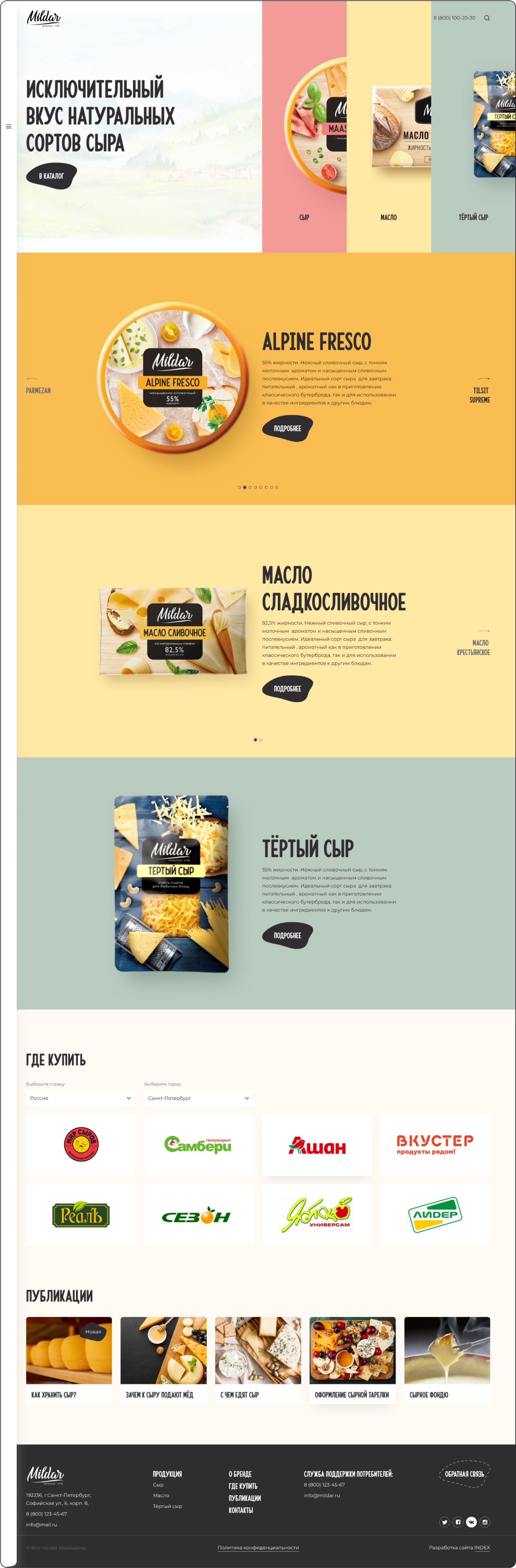 Задачей агентства было создать брендовый сайт для производителя сыров и масла Mildar, который бы выполнял следующие функции: