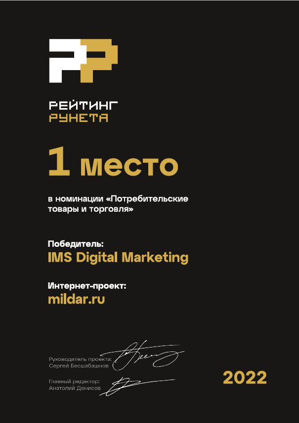 4. В 2022 году сайт занял Первое место в Рейтинге Рунета в категории «Потребительские товары и торговля» — независимое ежегодное голосование пользователей и профильного жюри подтвердило высокую оценку визуальной и пользовательской составляющей проекта.