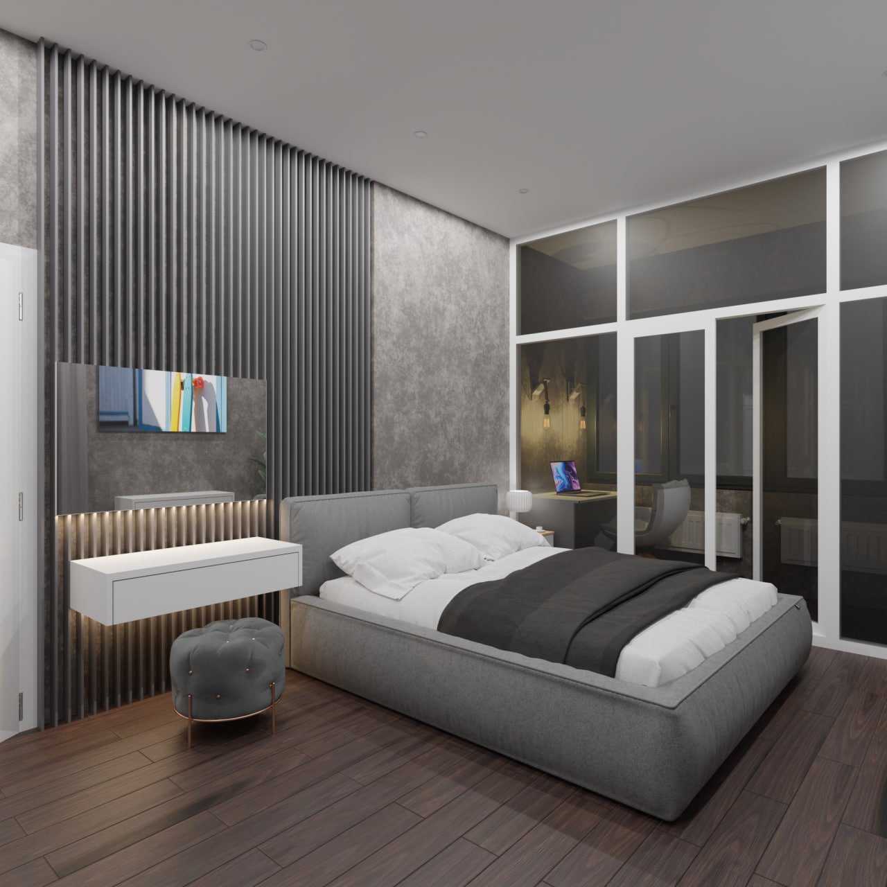 С заказчиком обговорили его предпочтение по стилю. Придерживались – Loft. Также уточнили информацию по детям – они несовершеннолетние, до 10 лет. Остановились на варианте сделать максимально удобную комнату для детей в розовых тонах. Остальные помещения – реализовали в строгом и минималистичном стиле.